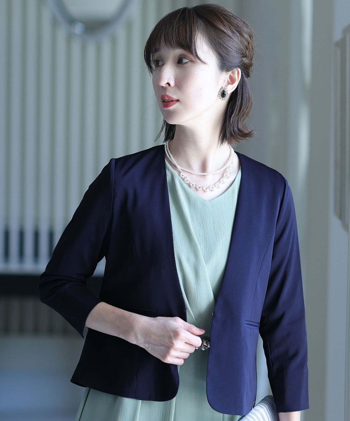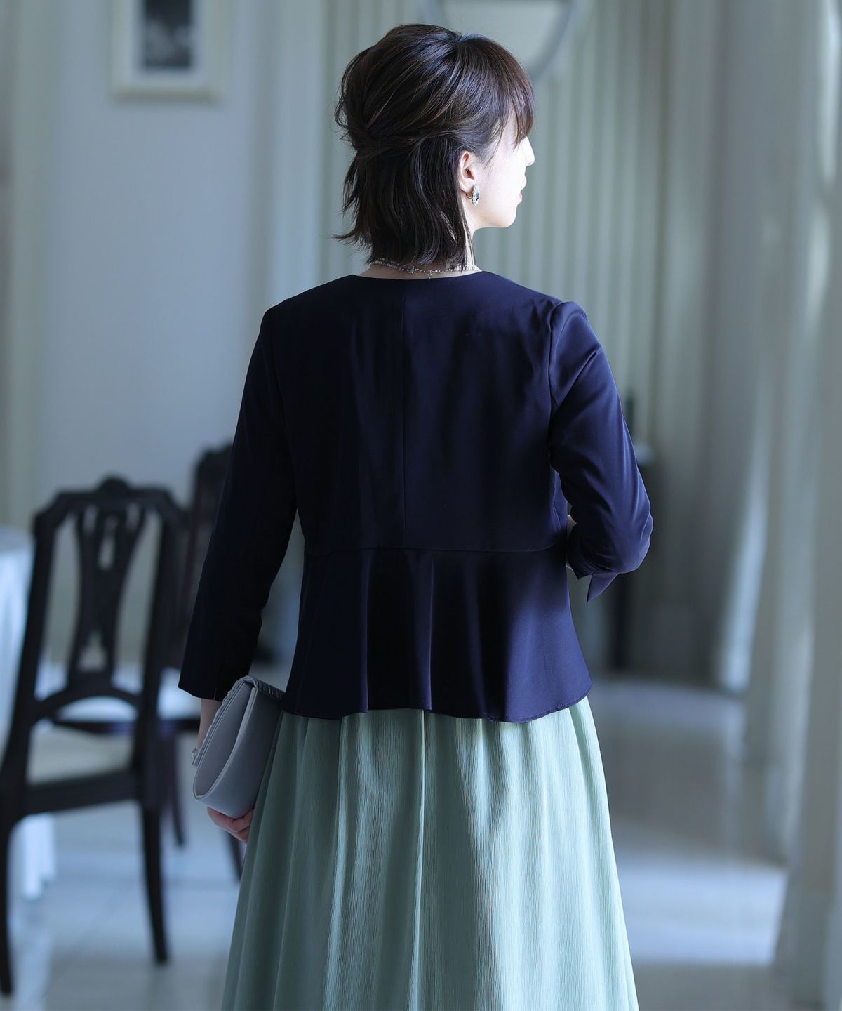 結婚式やパーティーに。人気の袖付きボレロやジャケットは、PourVousの上品なデザインと