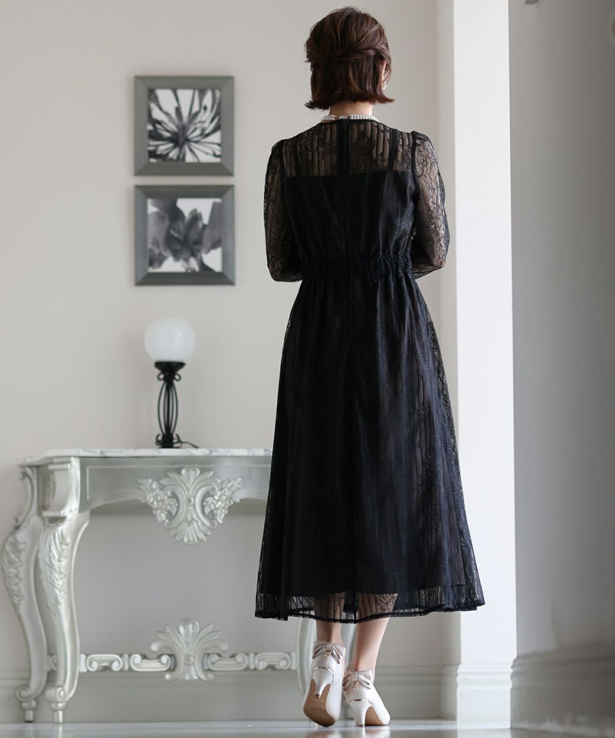 後ろにもこだわりのある主役級ドレス バックプリーツ&レースリボンドレス