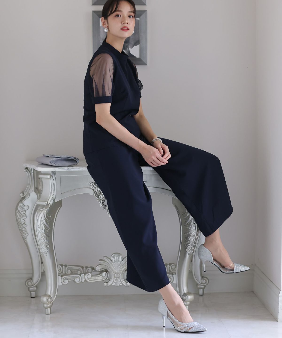 結婚式のパンツドレスならPourVous。上品な華やかさを纏(まと)うデザインから、セレモニースーツ風の洗練された