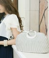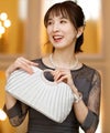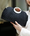 ビジュー サテンプリーツハンドバッグ 大きめ