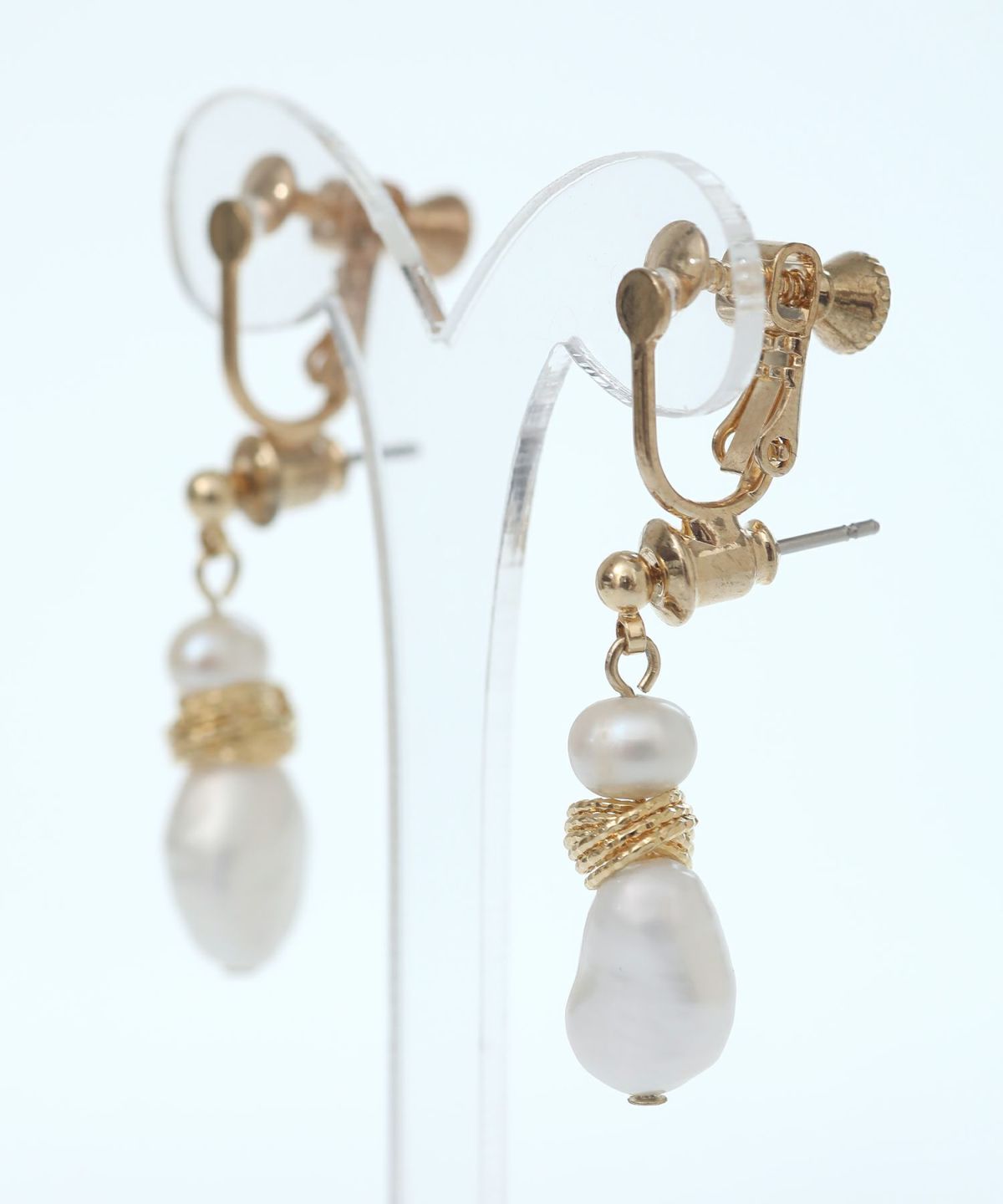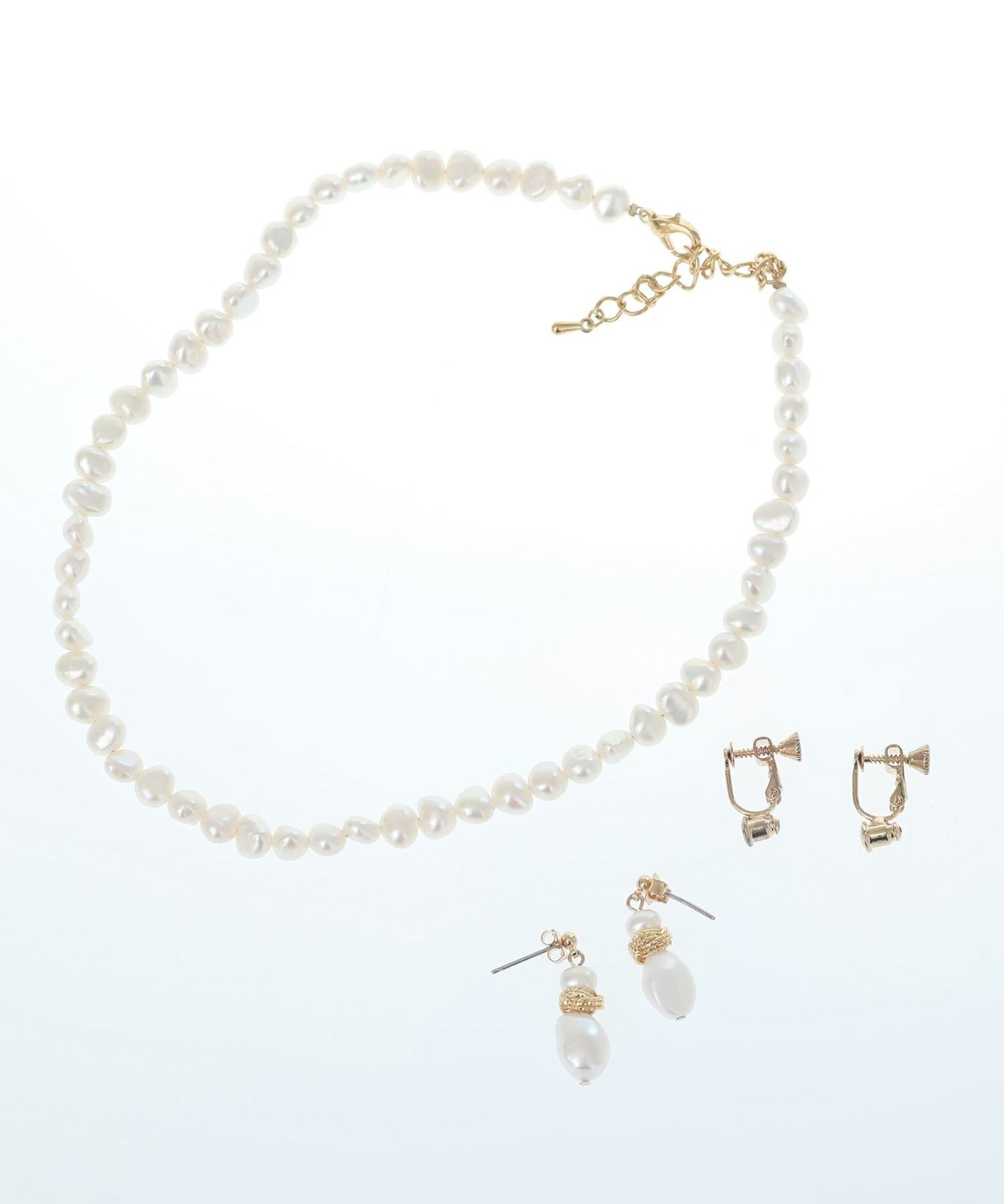 変形パール×ゴールドがコーデに華やかさを添える2点セット。