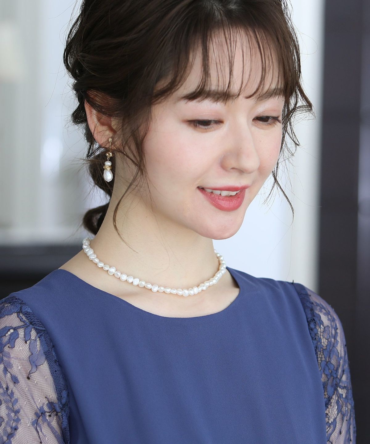 変形パールネックレス×ピアス(イヤリングコンバーター付き)【696211618】