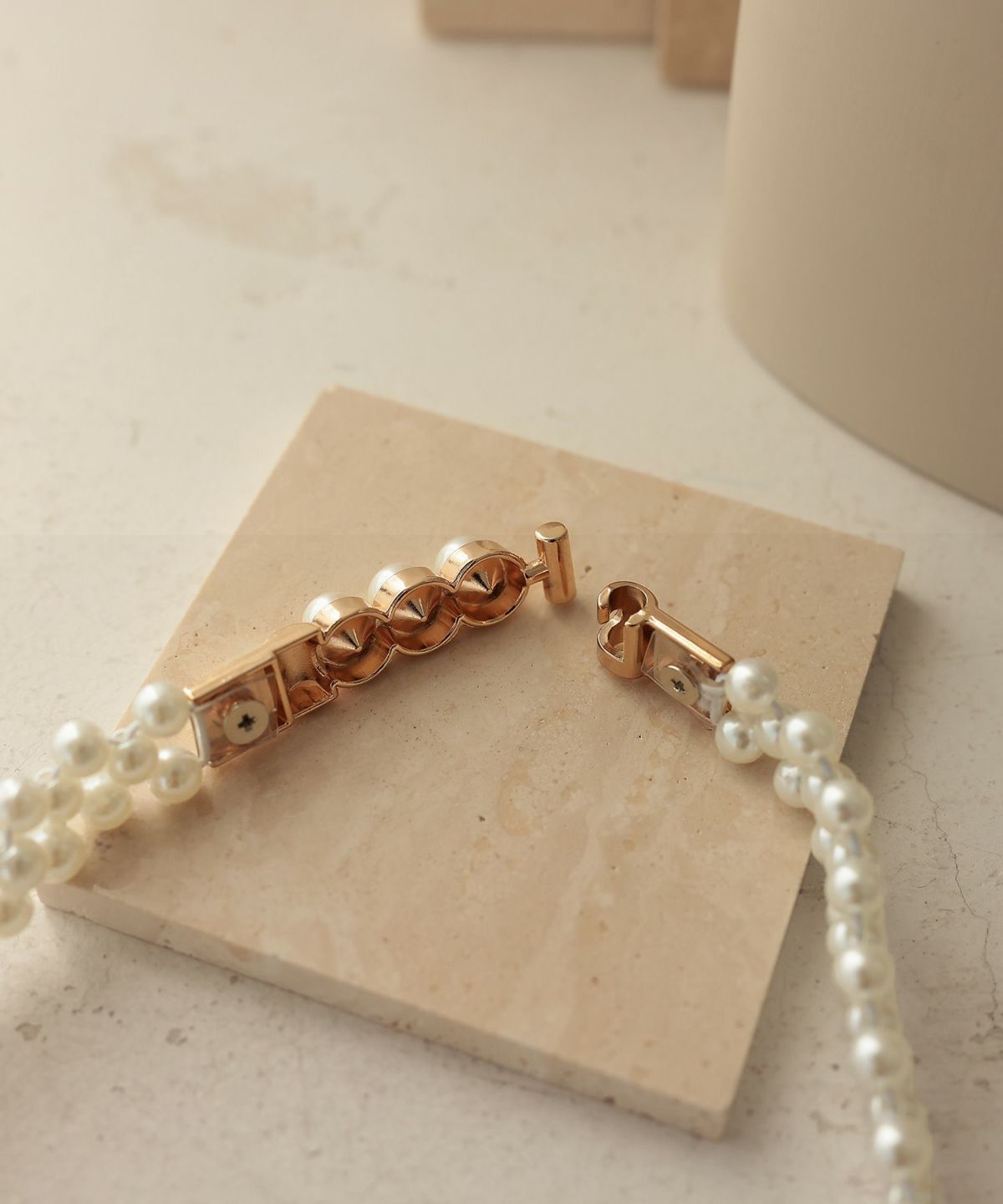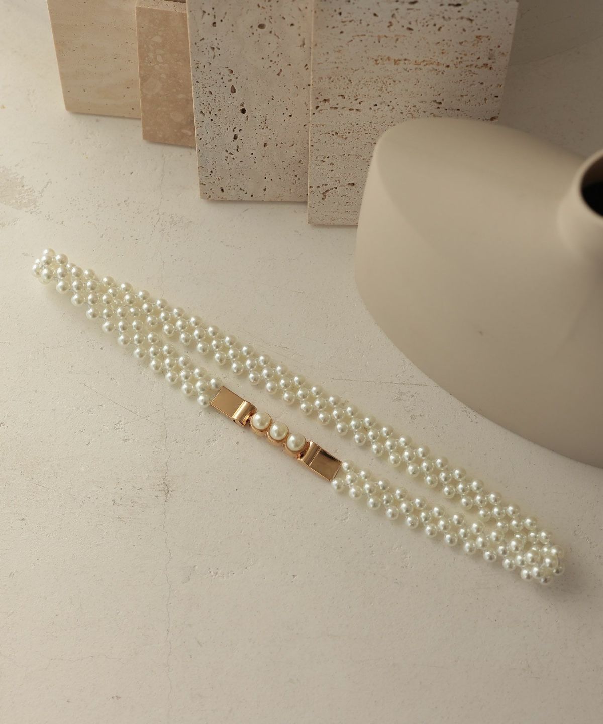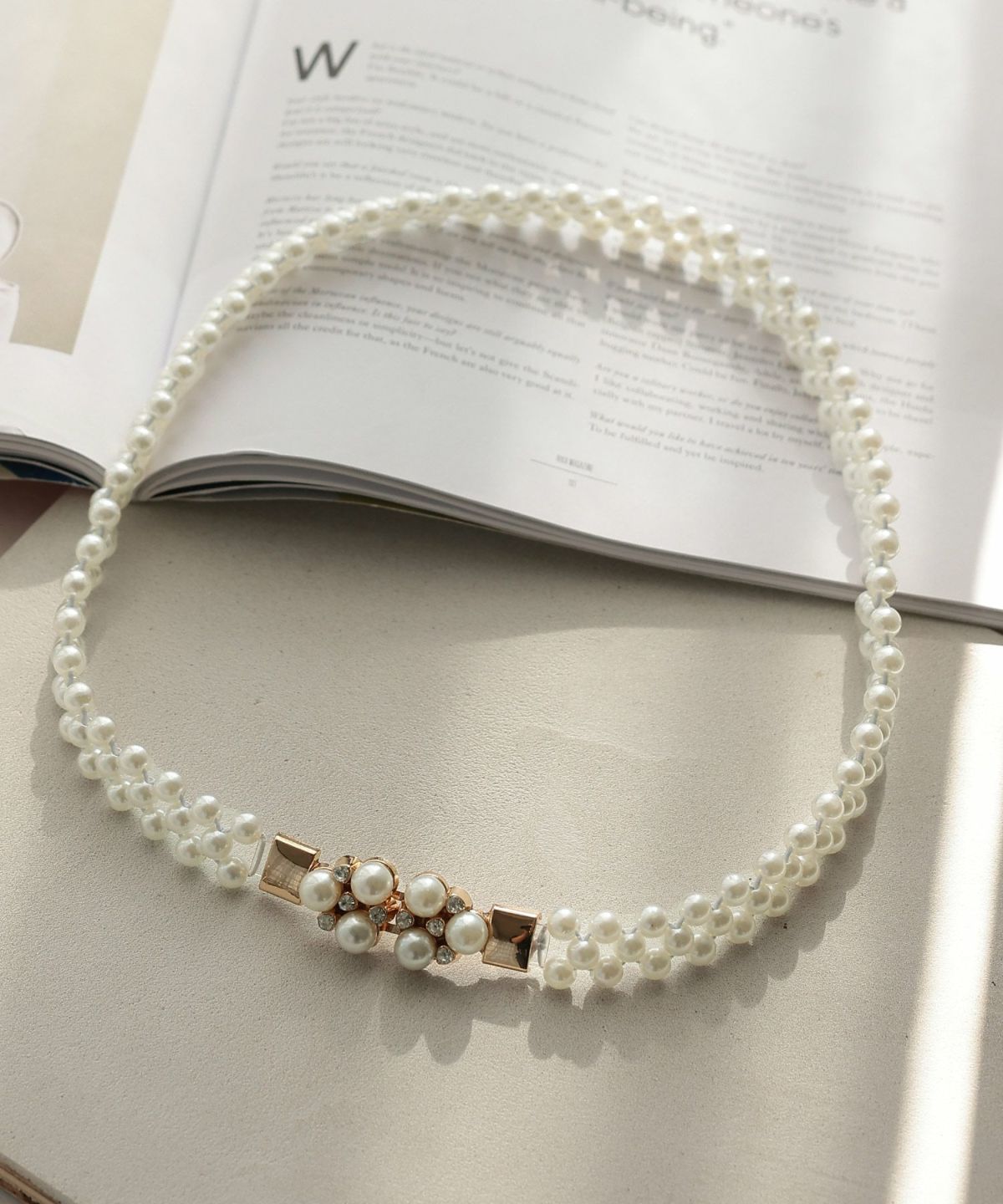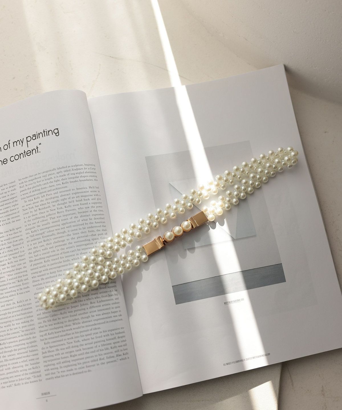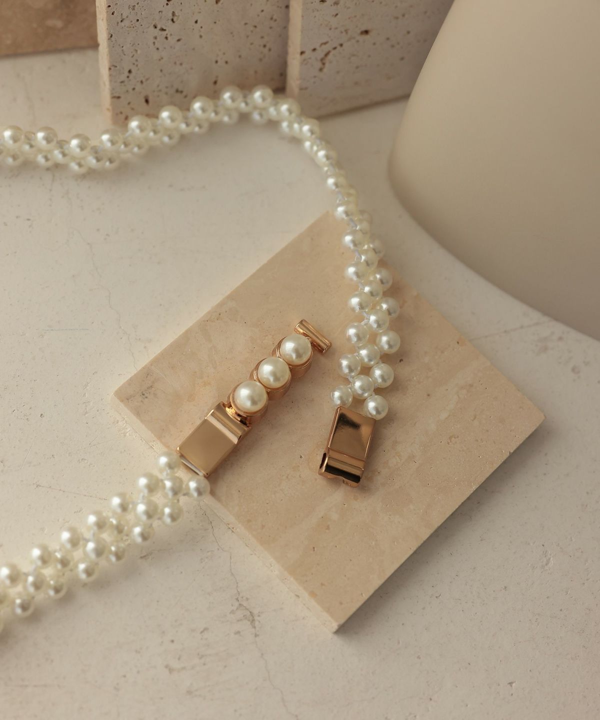 レザーミニポシェットやシンプルかつ上品な総パールベルト、エコバッグなどシンプルでエレガントさを残しつつ普段使いにも便利な雑貨を揃えています。
