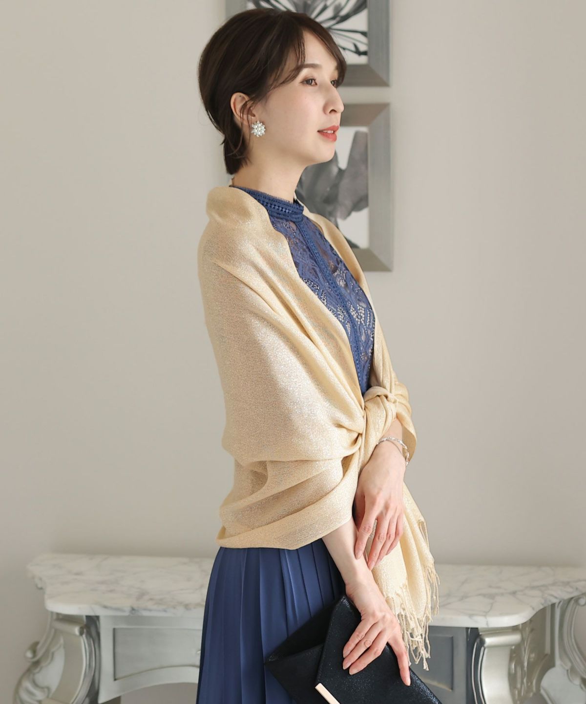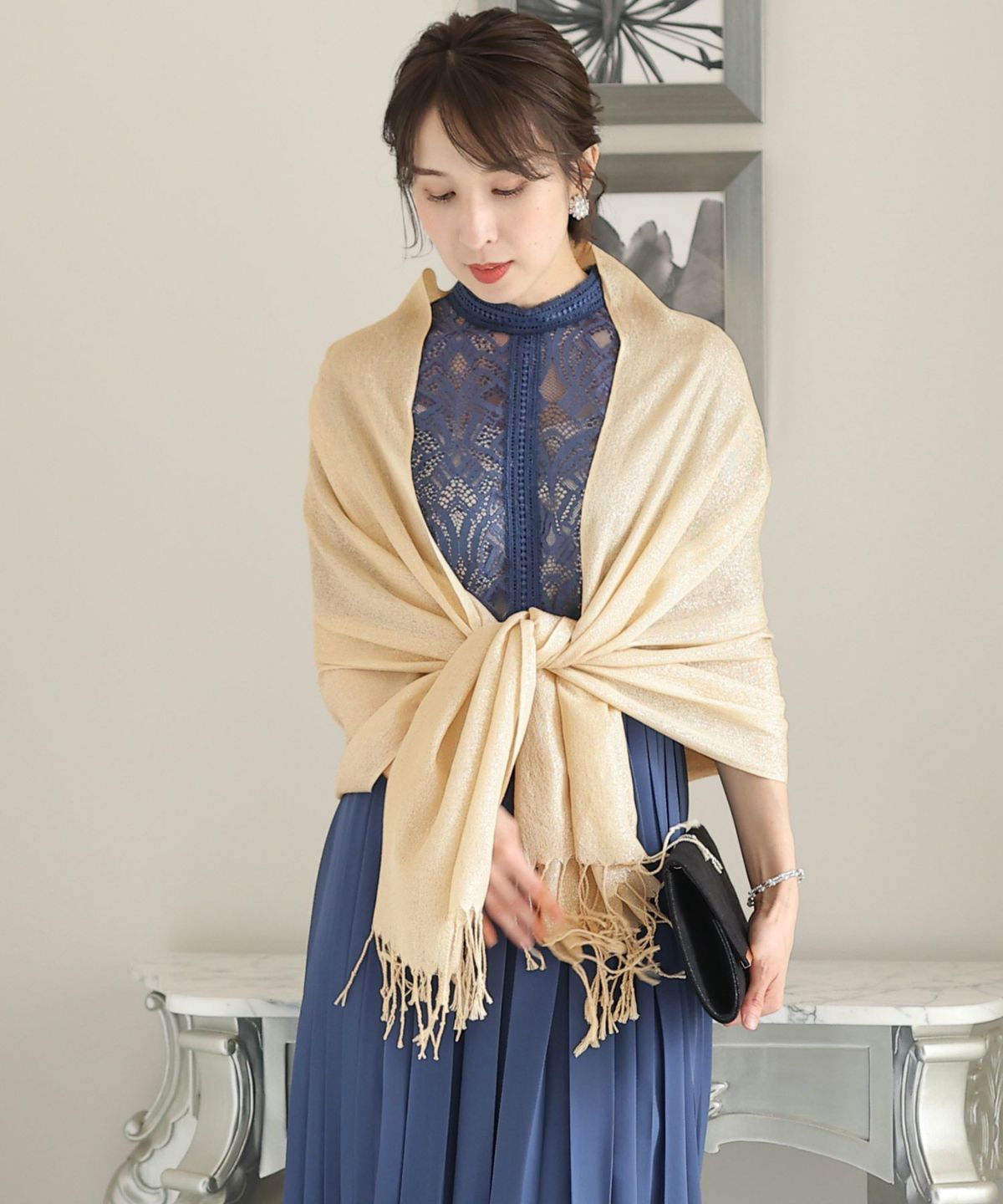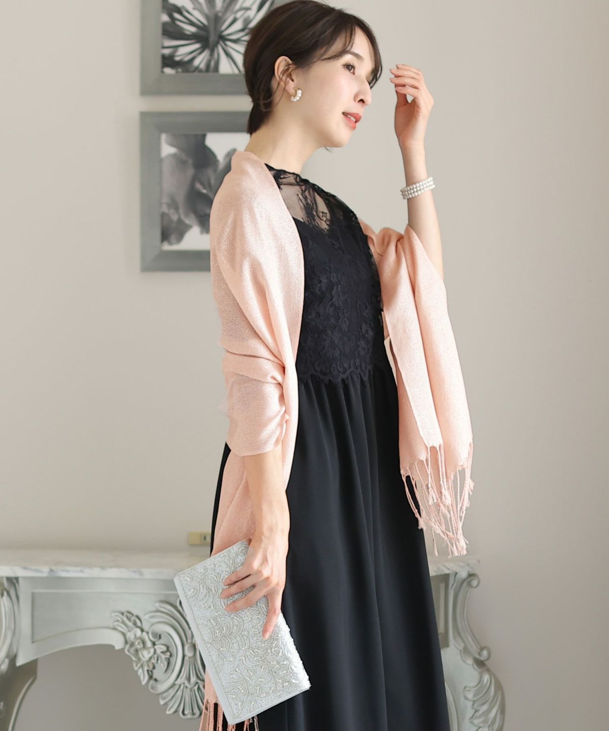 冷え込む夜には、ショールやボレロを羽織ってスタイルにアクセントを。シンプルなドレスには柄物や刺繍入りのショールで華やかさをプラスし、豪華なドレスにはシンプルなボレロでバランスを取ります。