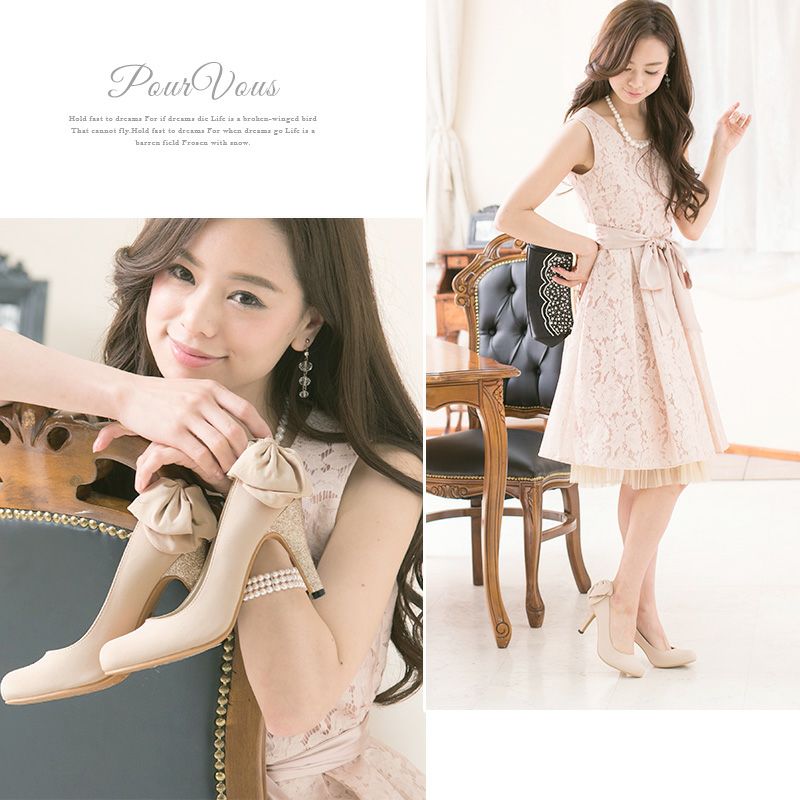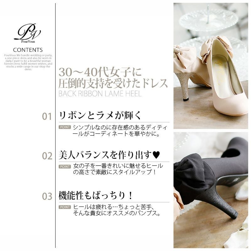 PourVousでは、定番のパンプスはもちろん、結婚式・二次会向けの華やかデザインまで多彩。