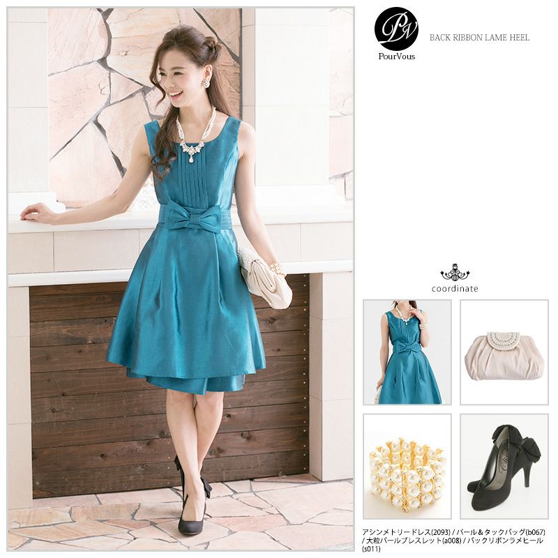 パーティードレスにぴったりのシューズで足元を美しく。ヒールの高さやデザインを選び、ドレスとのバランスを整えます。特に、同系色のパンプスやサンダルは、足を長く見せ、エレガントな印象を与えます。