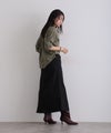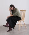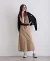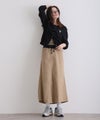 シンプルなロングスカートは一着は持っていたいアイテム。トップスをインすると黒のウエストリブがオシャレ。春秋にオススメの一着です。