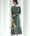カシュクール風のビスチェデザインでデコルテを美しく オーガンジー切り替えビスチェ風マーメイドワンピース
