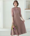 ふんわりと余裕のある生地感でフェミニンな印象 スタンドネック切替スカートワンピース