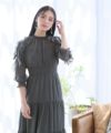 ウエスト下から重ねたチュールで柔らかく女性らしい印象に チュール切替パフスリーブワンピース