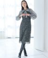 配色コードレースをレイヤードしたようなデザイン プチハイネックボリュームスリーブマーメイドワンピース