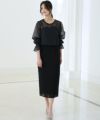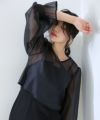 透け感のある袖とデコルテが、フェミニンさを演出。