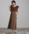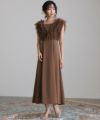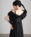 華やかなチュールベストがセットになったAラインドレス。