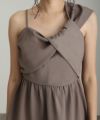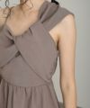 アシンメトリービスチェとパンツの2点セットで、エレガントかつモダンな印象を与えるドレスです。