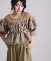 トップスのふんわりとしたデザインが、華やかさを引き立てます。