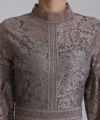 透け感あるレースのハイネックが優雅なイメージを与えてくれます。