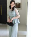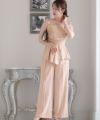 デコルテと袖の透け感が可愛いビスチェ風セットアップ。