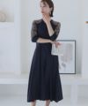 ■レーススリーブが大人可愛い体型カバーポイント:【二の腕】【脚】【ウエスト】【ヒップ】背面ウエストゴム入りで着心地も楽ちんです。ウエストタックでスタイルアップ効果も。