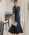 ■マーメイド×配色レース配色コードレースをレイヤードしたようなデザインのワンピースです。マーメイドシルエットで女性らしさアップ。デコルテ~袖の程よい透け感が上品な印象に。オケージョンシーンはもちろん特別なお食事会などにもおすすめです。