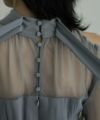 デコルテから袖にかけての程よい透け感が女性らしい。カットアウトデザインが大人っぽくさりげない肌見せができます。