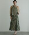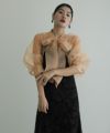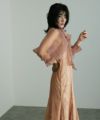 オーガンジー生地を使った透け感のあるボレロが女性らしさをアップ。なだらかに広がるスカートが上品で華やかな一着。