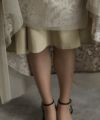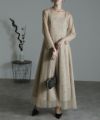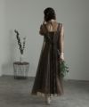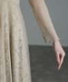■透明感のある上品な大人の女性デザイン花柄のエプロンワンピースが輝くラメチュールに透けてデコルテなどが美しく女性らしい魅力を引き立てます。首元はシンプルなデザインになっているのでアクセサリーも映えるのも魅力。リボン側を前に着る事もでき、気分に合わせて2WAYを楽しめます。