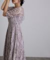 光沢あるレースとキャミソールワンピースのドッキングが目を惹くドレス。