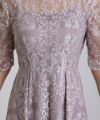 光沢感レースがシックな個性派ドレス バックリボンギャザースリーブワンピース