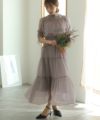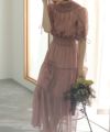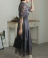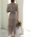 ■オーロラのようなロマンティックな光沢感ドレス光沢感と程よい透け感とシャーリングが上品なワンピース♪ウエスト部分のシャーリングで締め付け感も少なく着心地◎ボリューム感のあるティアードスカートが華やかです♪結婚式などのオケージョンだけでなく特別なデートなどにもピッタリです。