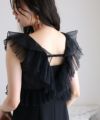 ソフトなオーガンジーとプリーツチュールの組み合わせが新鮮なデザイン。