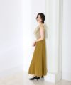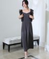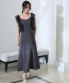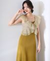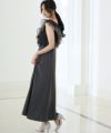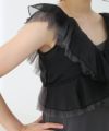 ラッフルとプリーツの異素材ミックスが映えるトップスと、フレアラインのキャミドレスが美しい一枚。