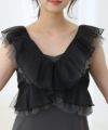 ソフトで繊細なオーガンジーにプリーツチュールを重ねたトップスは、質感のコントラストが魅力です。