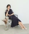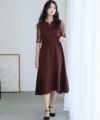 胸元はカシュクールデザインでベーシックな仕上がりですが、キーネックラインを取り入れることでトレンド感をプラス。