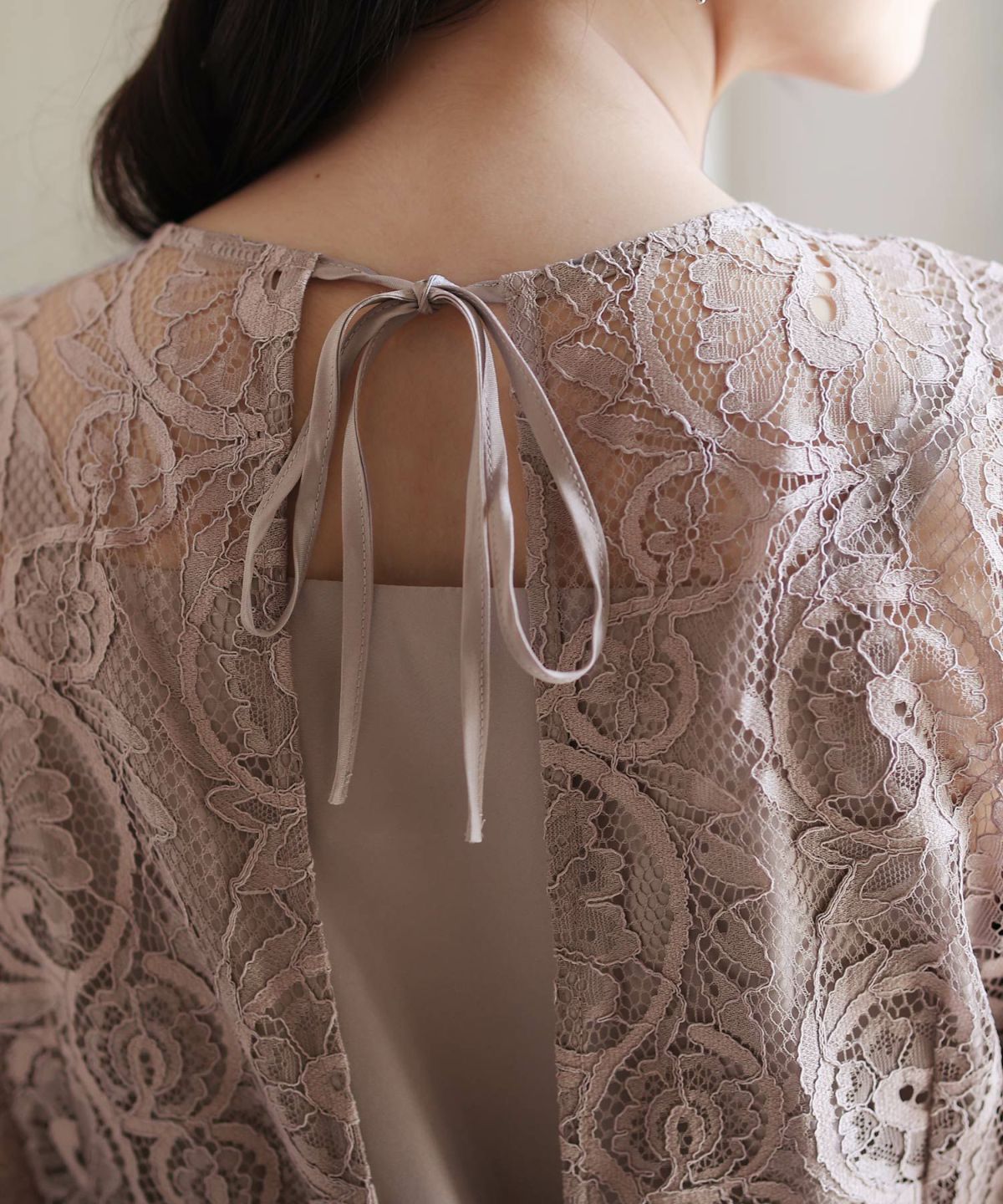 ■バックリボン×レーススカラップの裾が可愛く、総レースアウターが華やかなワンピース。アウターは前後2way仕様で着用可能です。リボンを後ろにすればバックスタイルも可愛い印象に。総レースアウターとキャミワンピースを別々で着用することもできます。