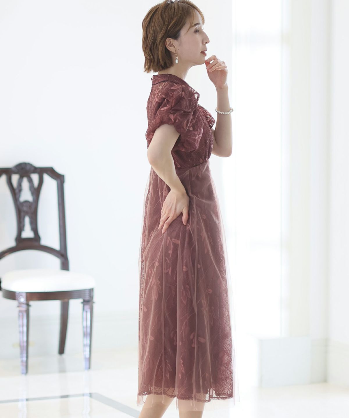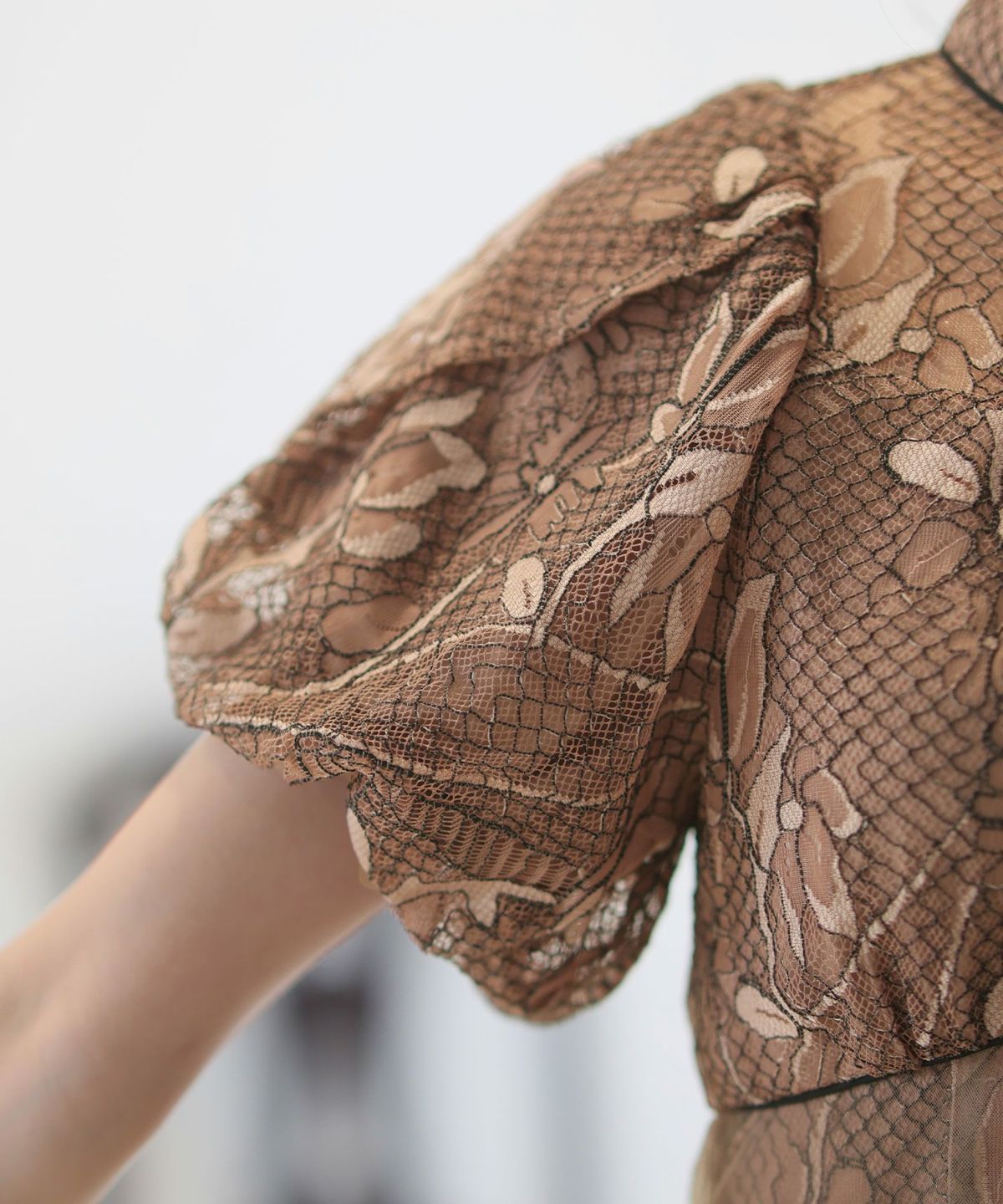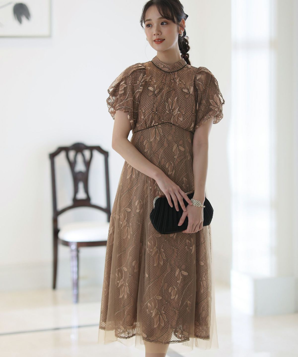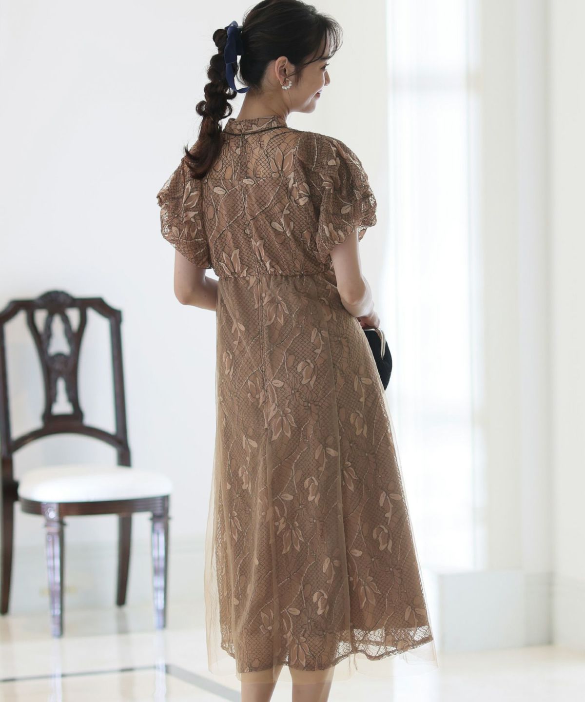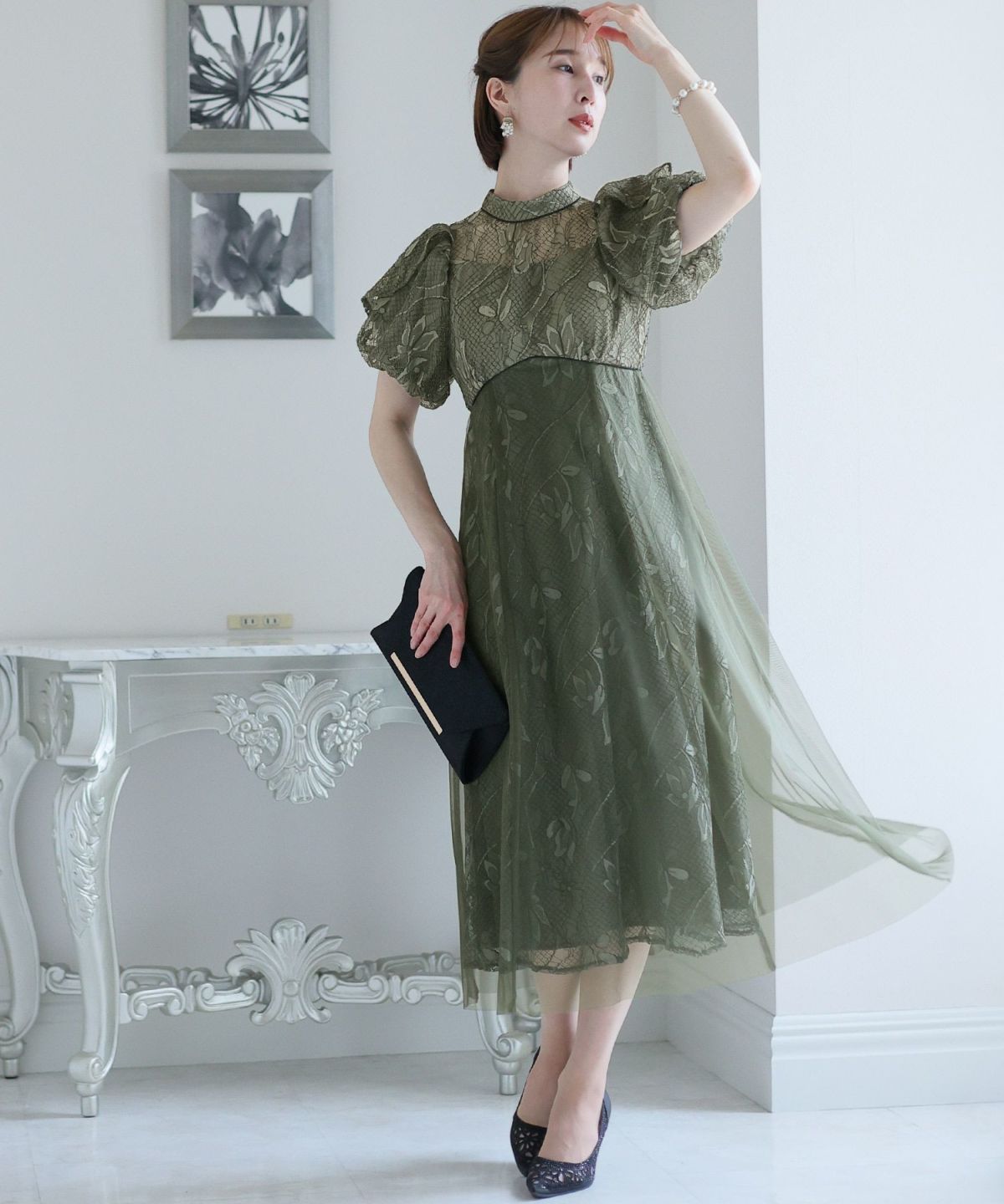 ■総レース×チュールコードレースを使用し、レースの柄がしっかりと出ていて可愛いワンピースです。ウエスト下からチュールを重ねているので柔らかく女性らしい印象に。パフスリーブでさらに可愛らしさアップ。オケージョンはもちろん、特別な日のお食事会等にもおすすめです。