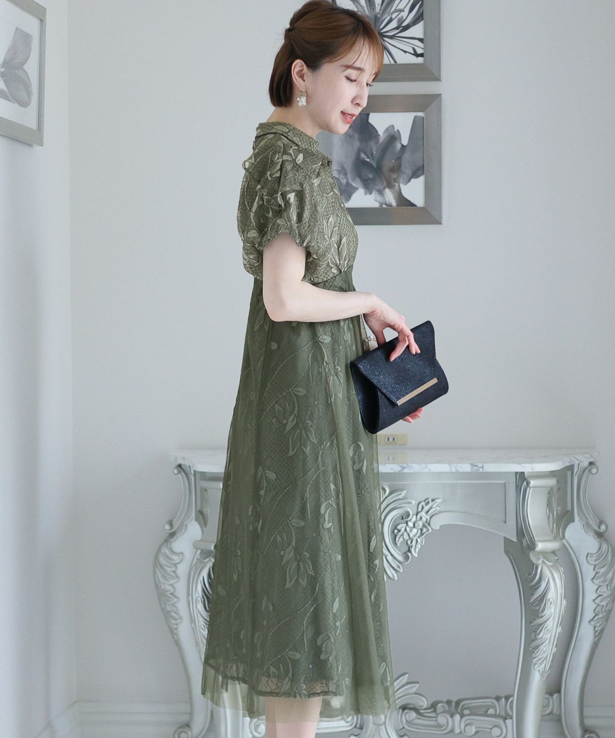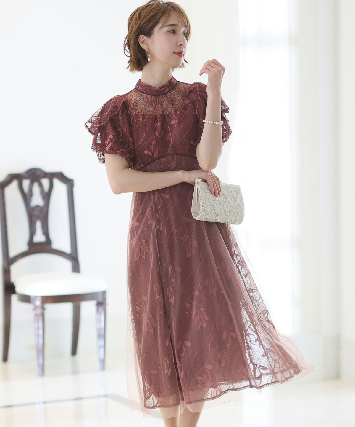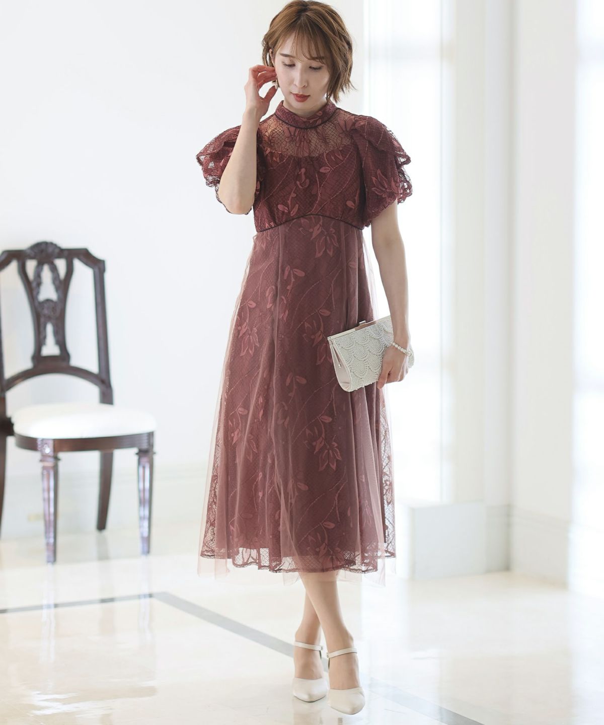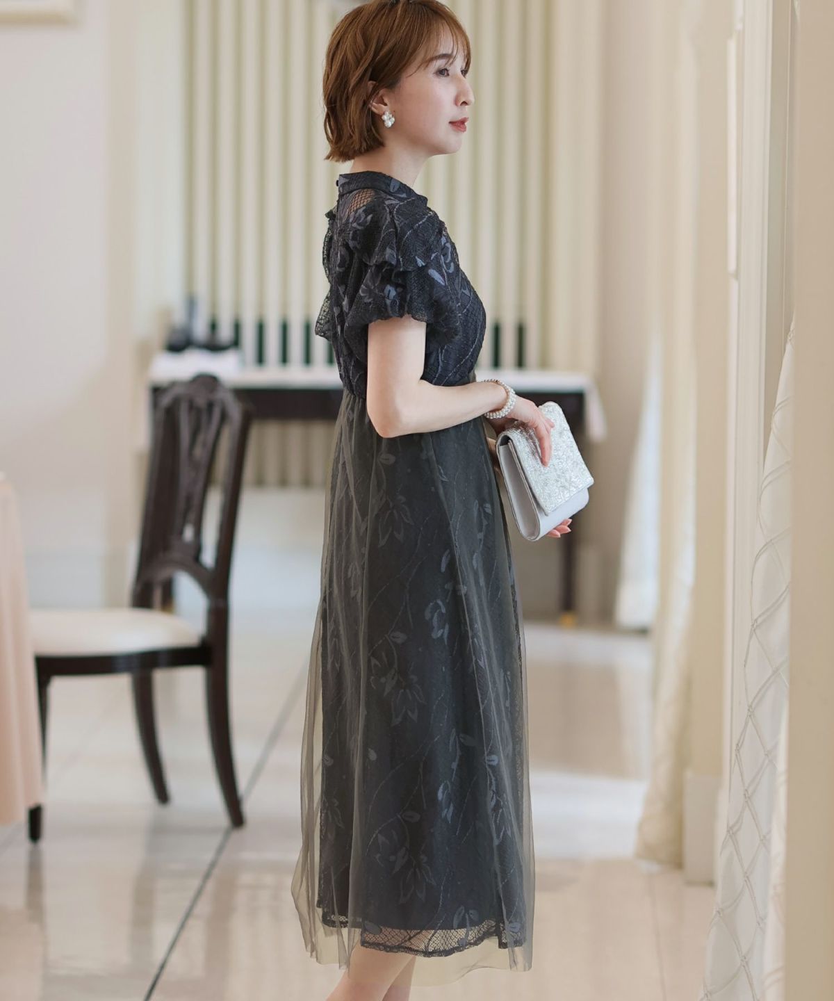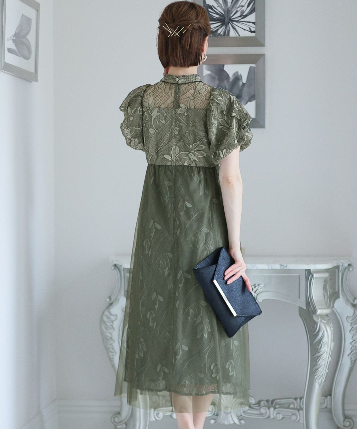 ■総レース×チュールコードレースを使用し、レースの柄がしっかりと出ていて可愛いワンピースです。ウエスト下からチュールを重ねているので柔らかく女性らしい印象に。パフスリーブでさらに可愛らしさアップ。オケージョンはもちろん、特別な日のお食事会等にもおすすめです。
