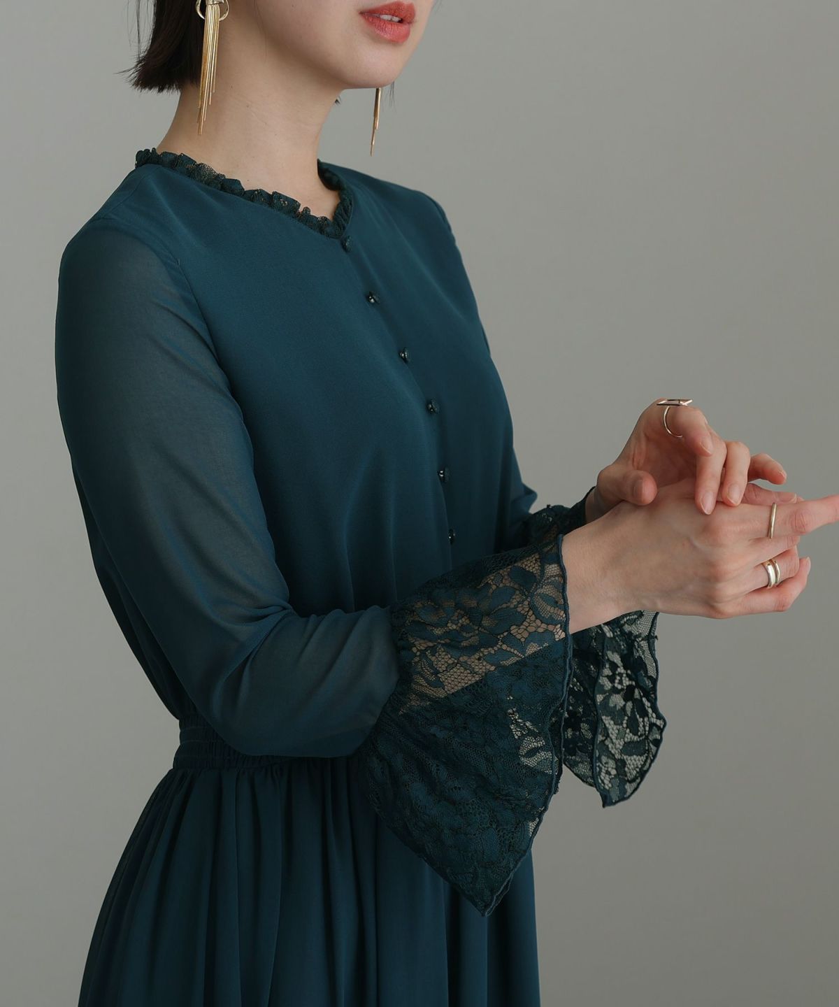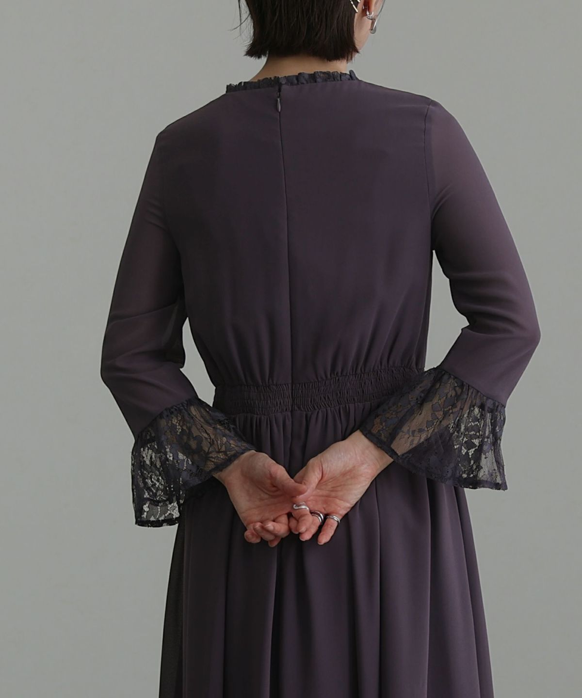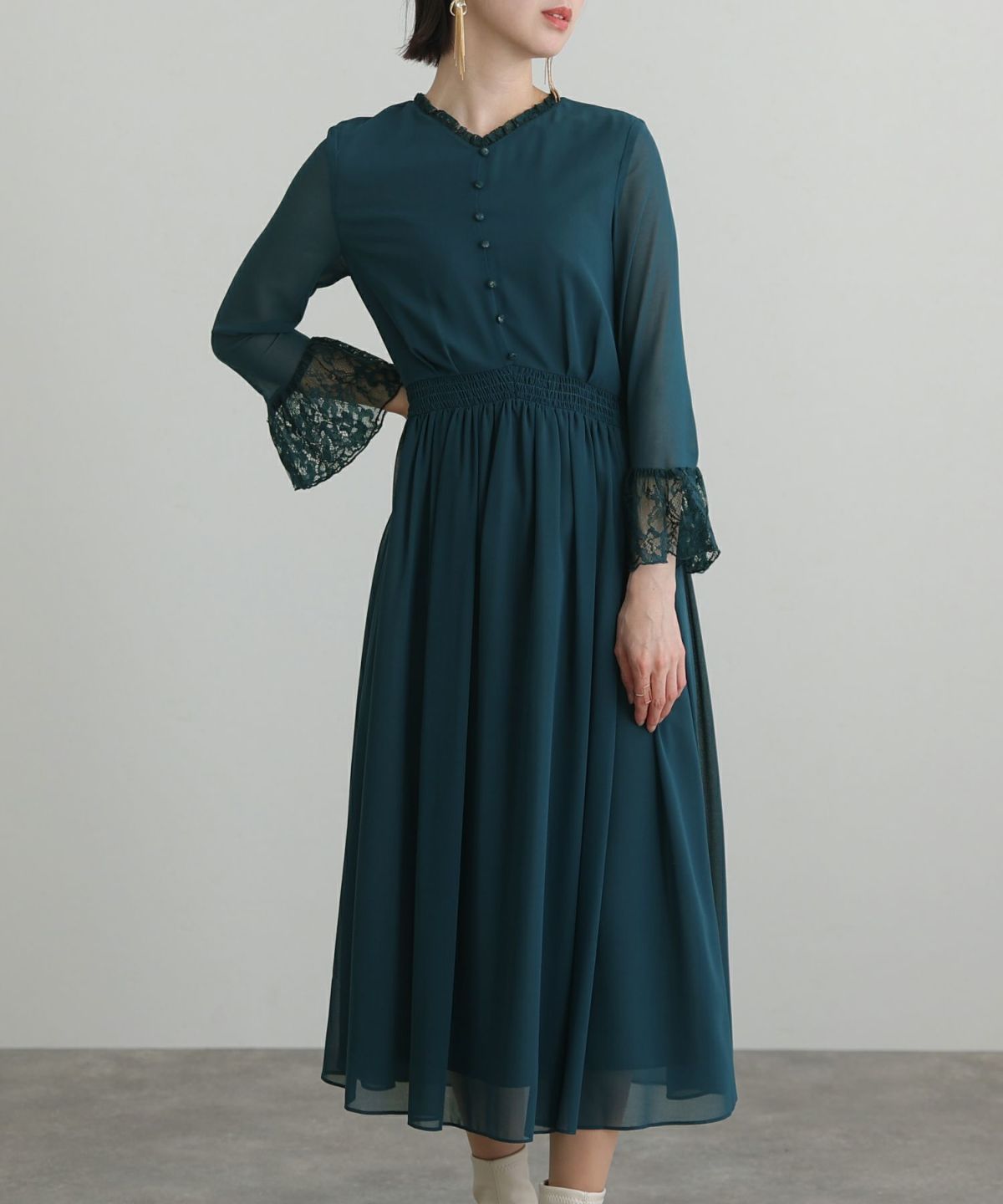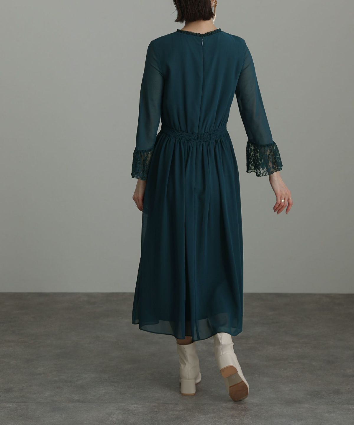 ■シフォン×レース切替やわらかいシフォン生地で着心地楽ちんな一着。ウエストシャーリングからの広がるシルエットが大人な女性の印象をプラス。トレンドの大人カジュアルな着こなしもできるワンピースです。シンプルなデザインなためフォーマルシーンだけでなくデイリーでも活躍してくれます。