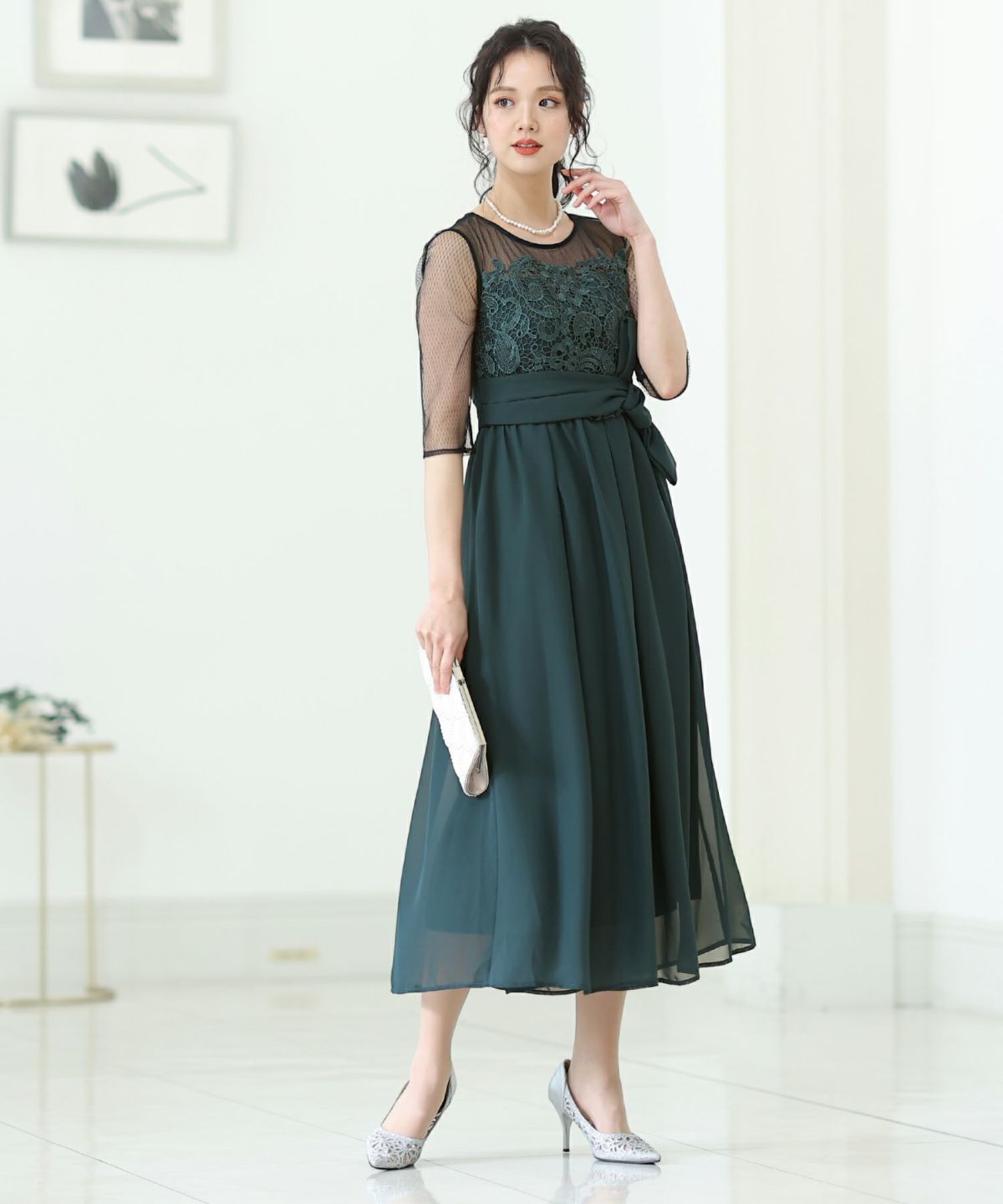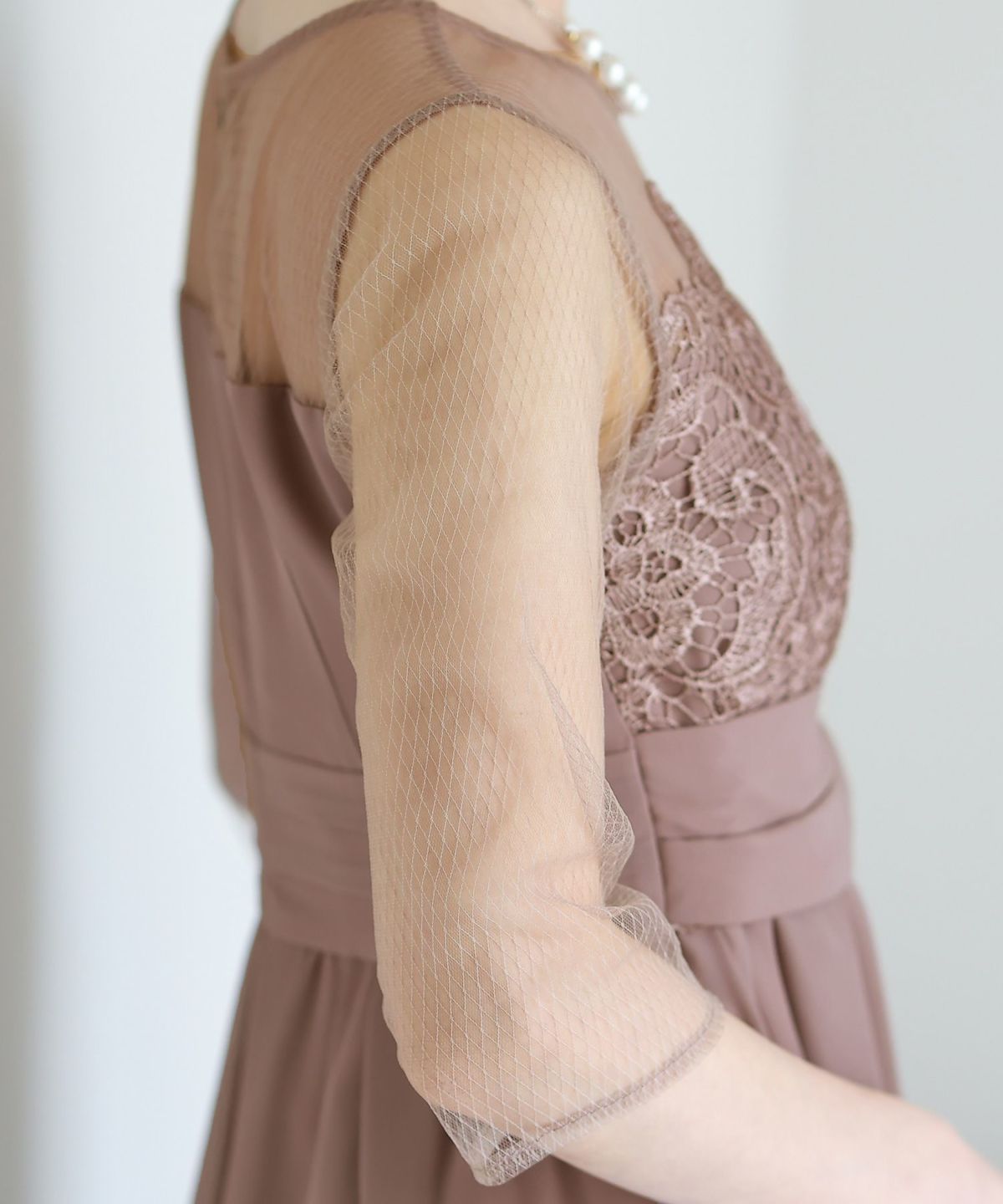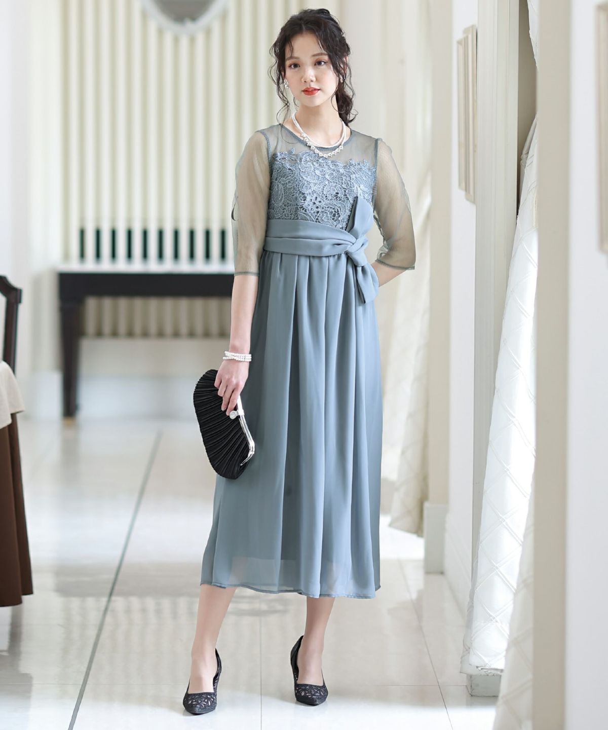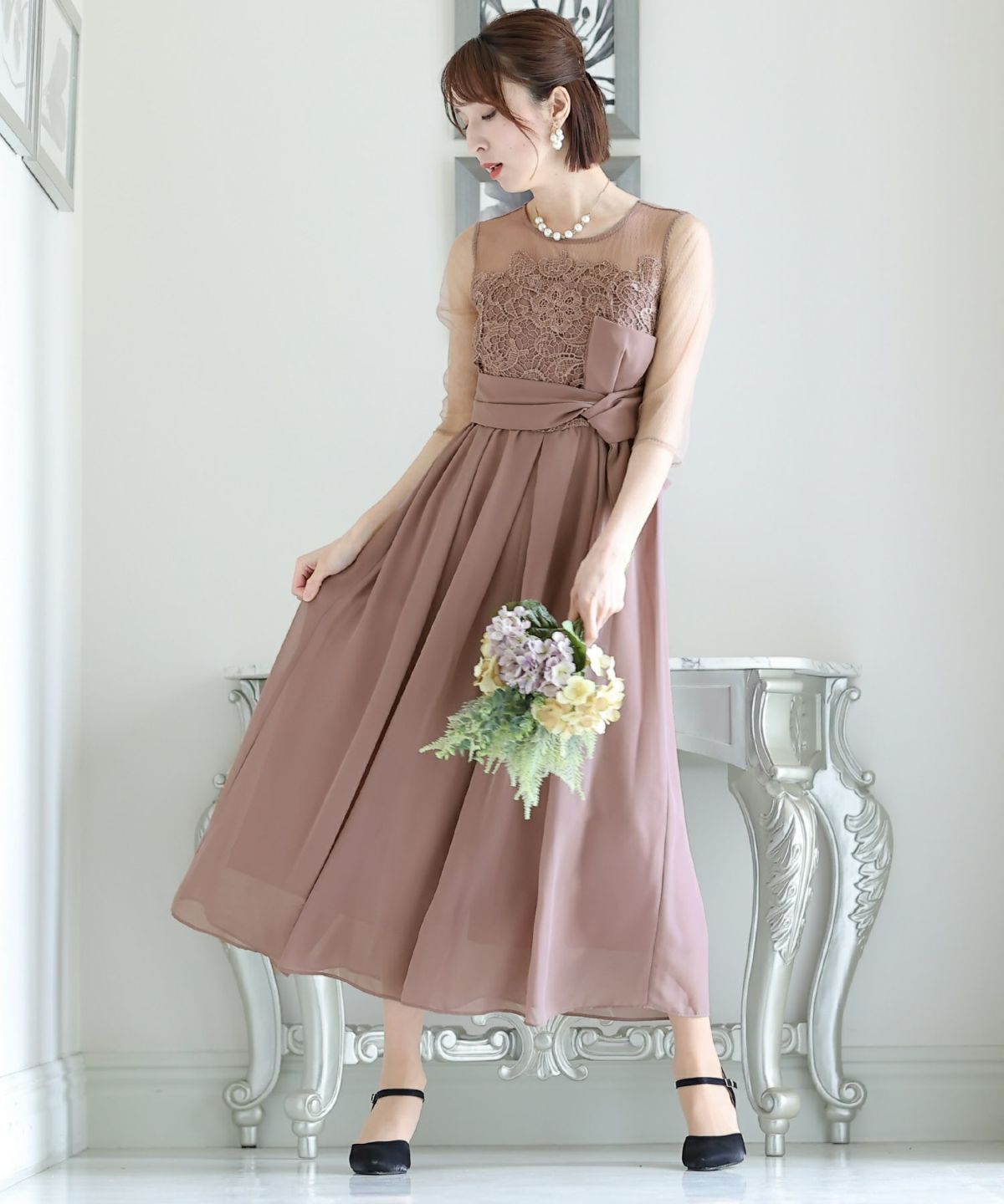 胸元のエンブロイダリーレースが高級感纏わせてくれる仕上がりになっています。