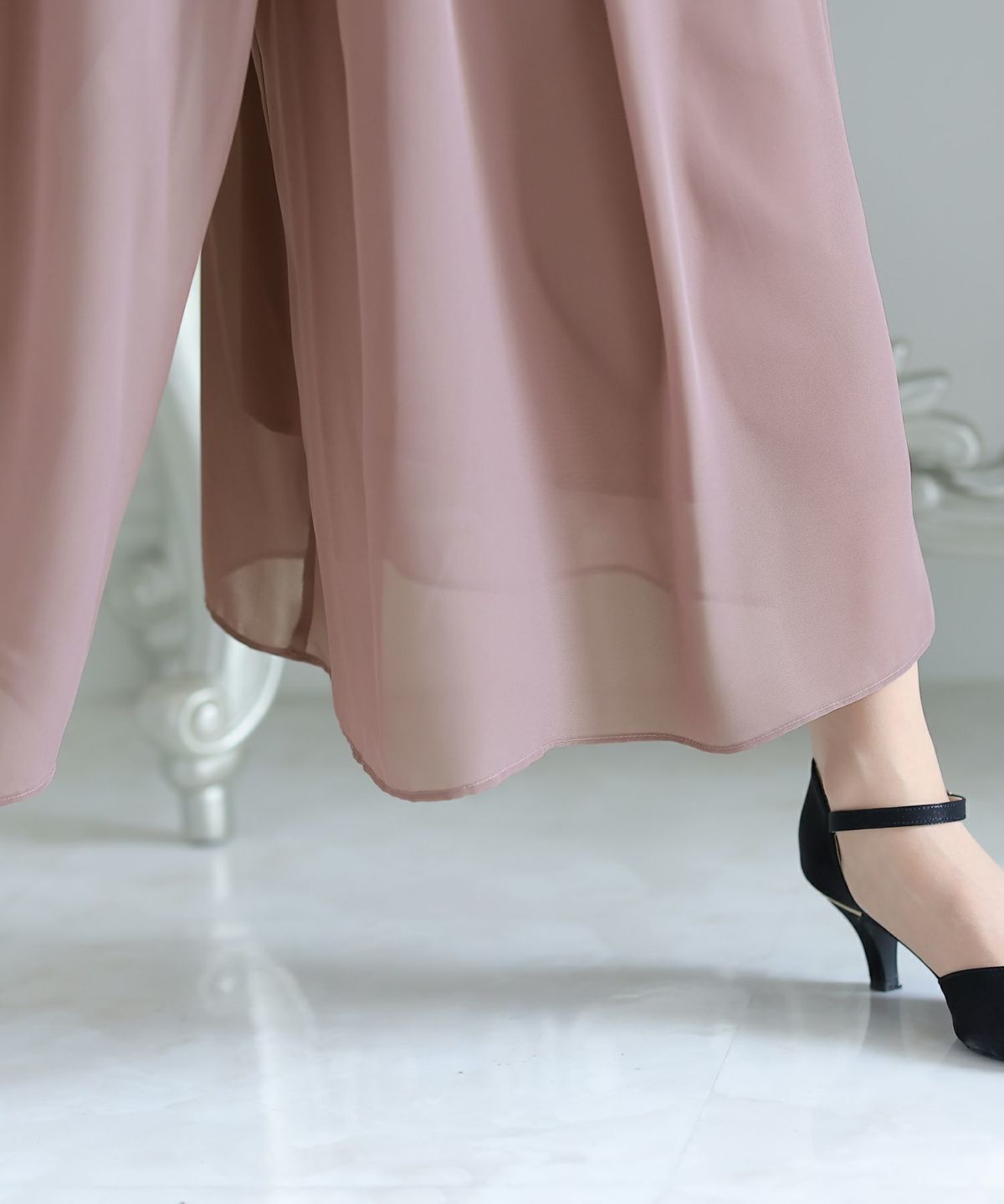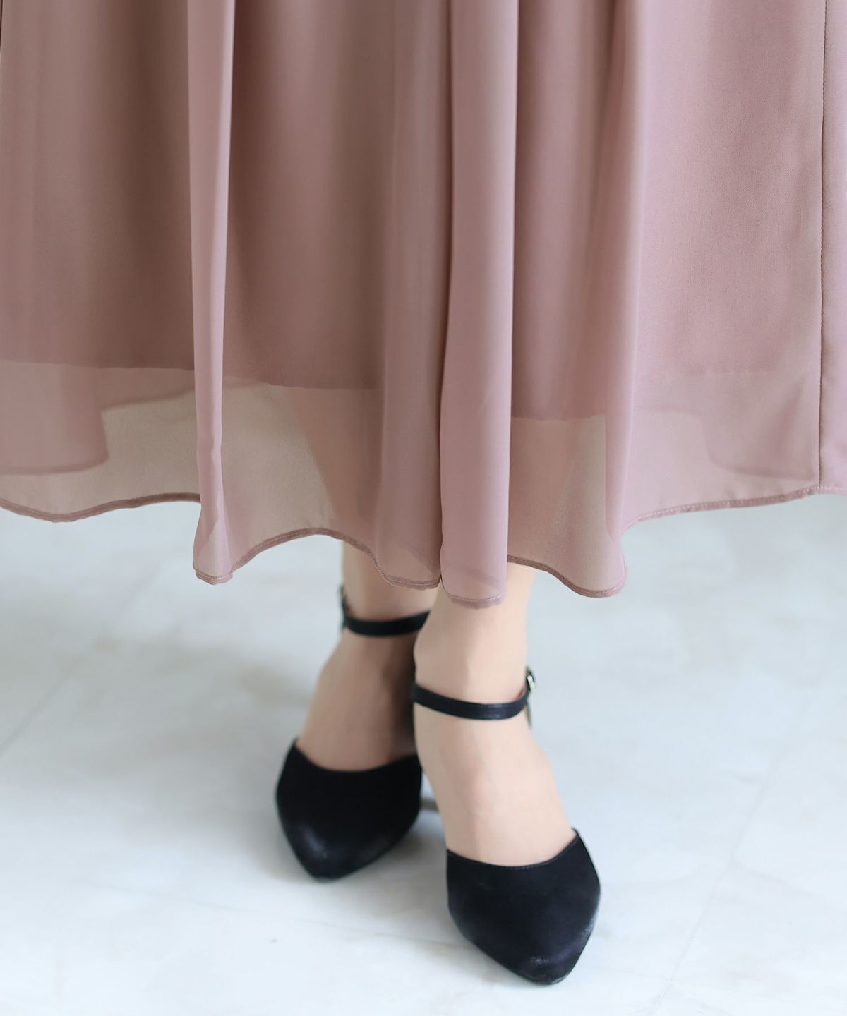 裏地が少し短めのデザインなのでシフォンの裾の透け感を楽しめる一枚になっています。