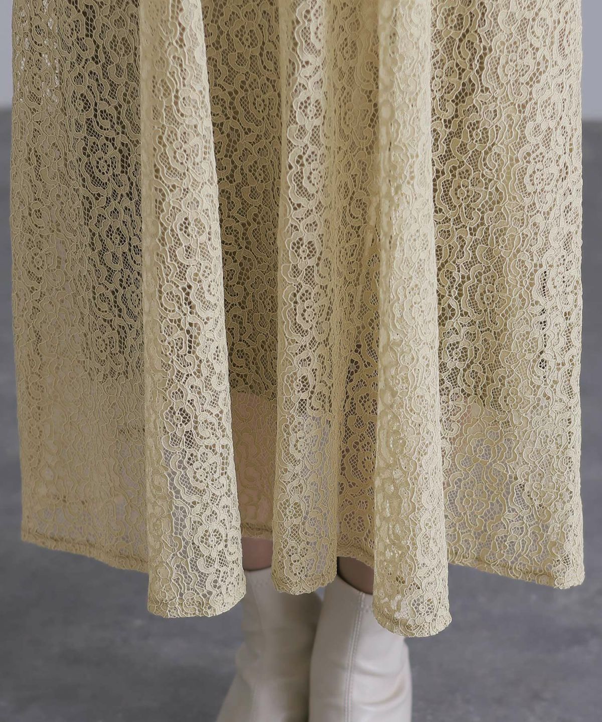 ■上品な光沢感のあるレース生地マーメイドスカートは歩くと揺れ感がきれいで、エレガントな雰囲気を演出します。