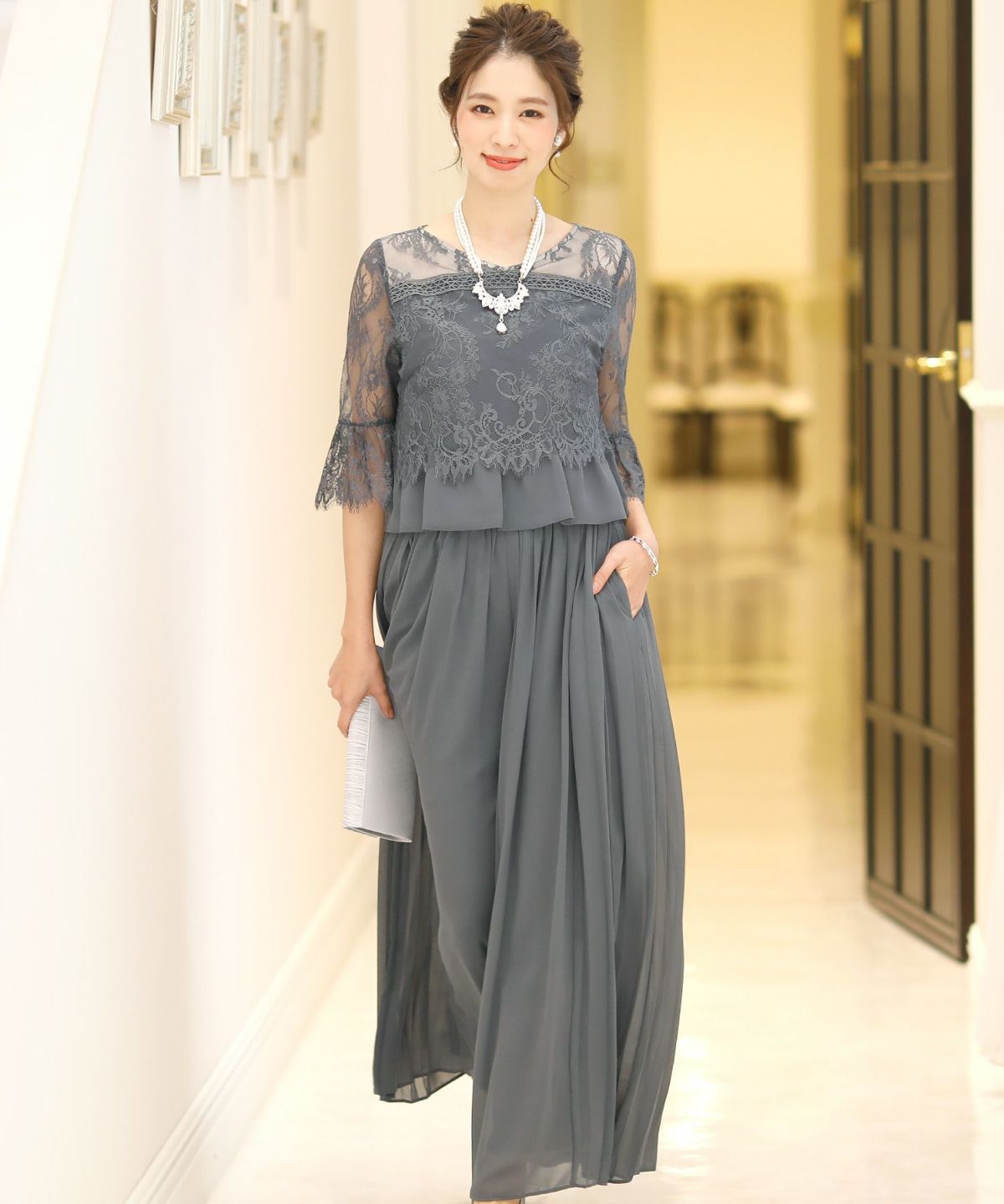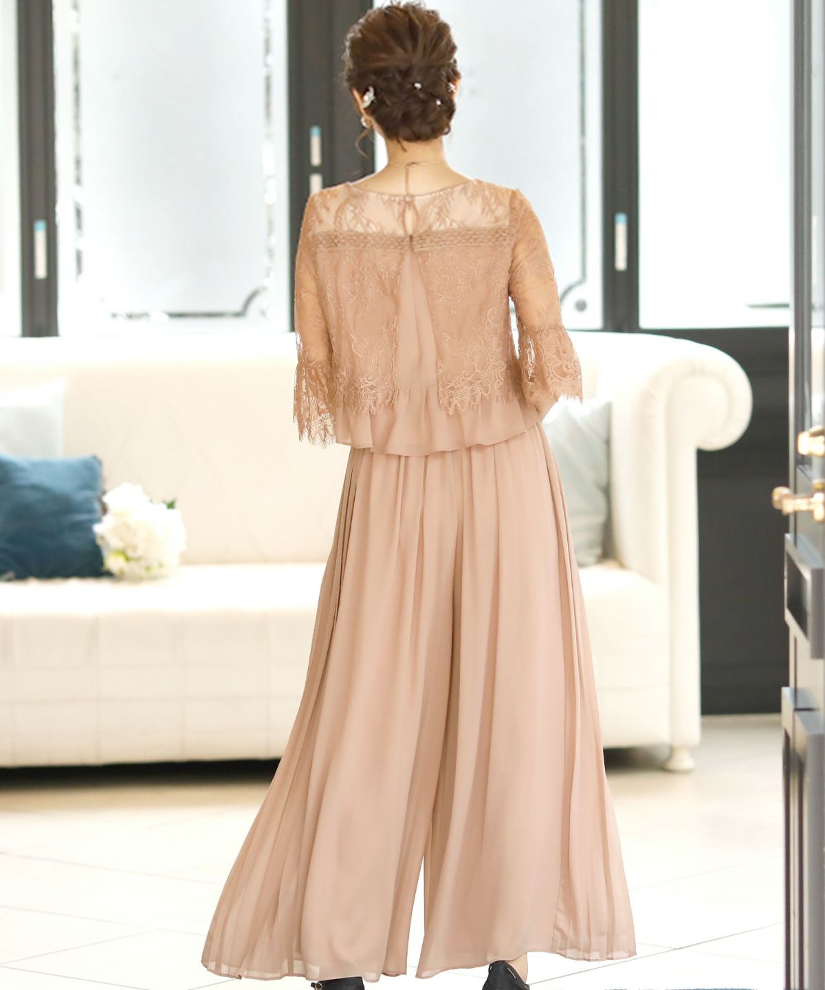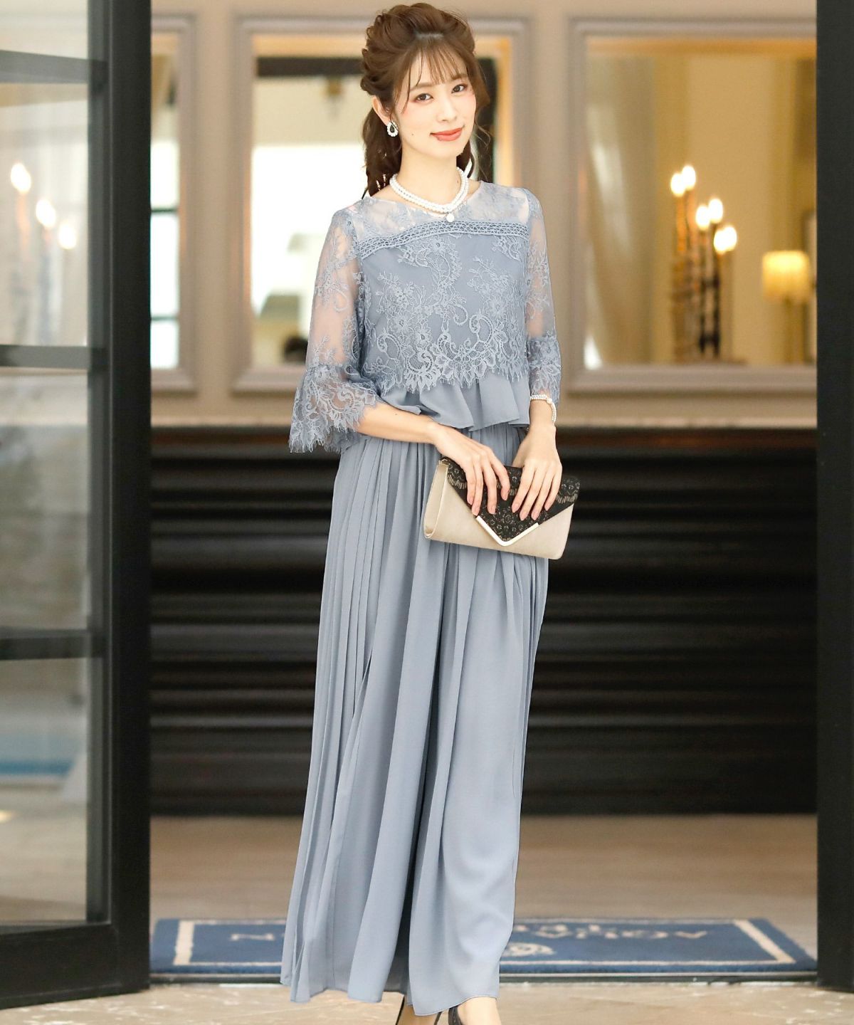 上品で楽ちんな優秀セットアップ♪ スカラップレースセットアップパンツドレス