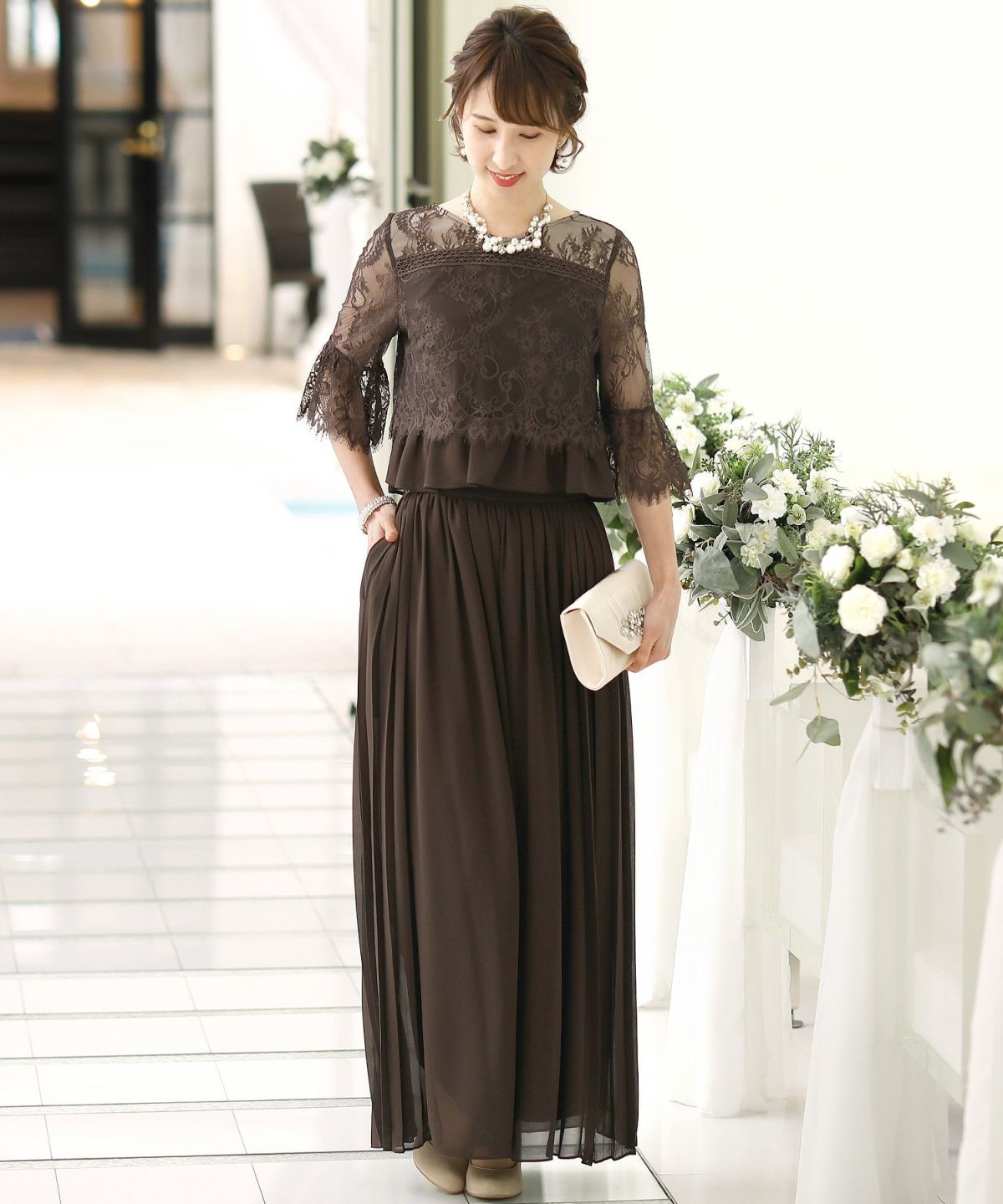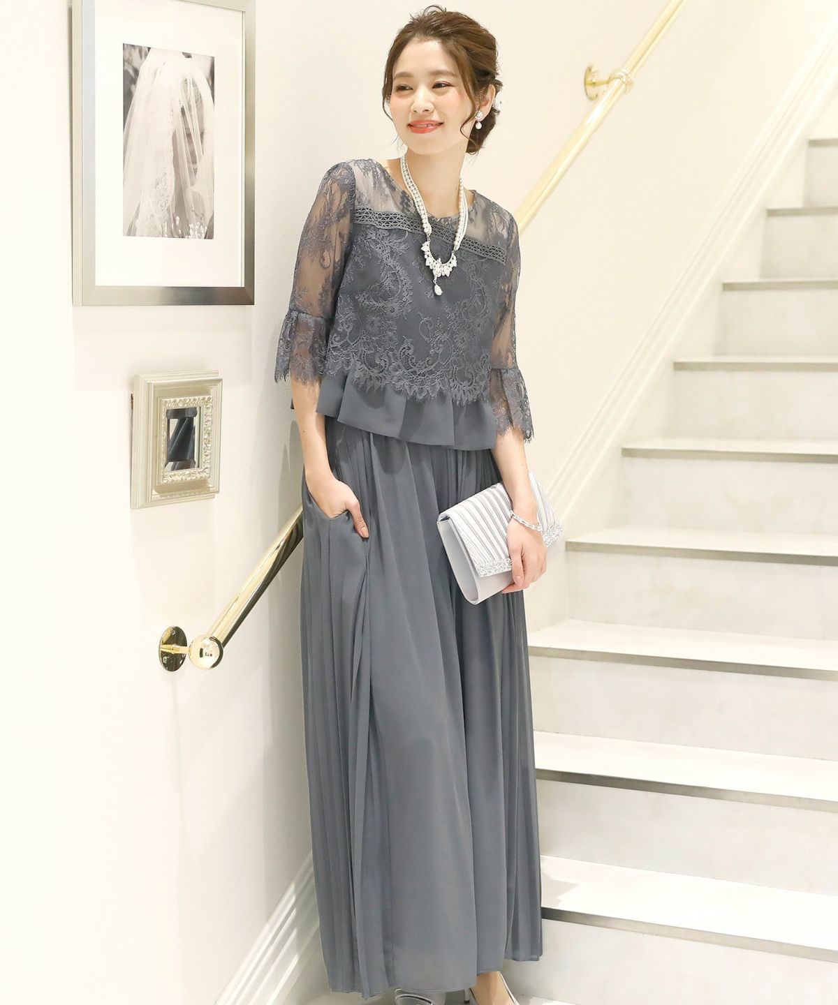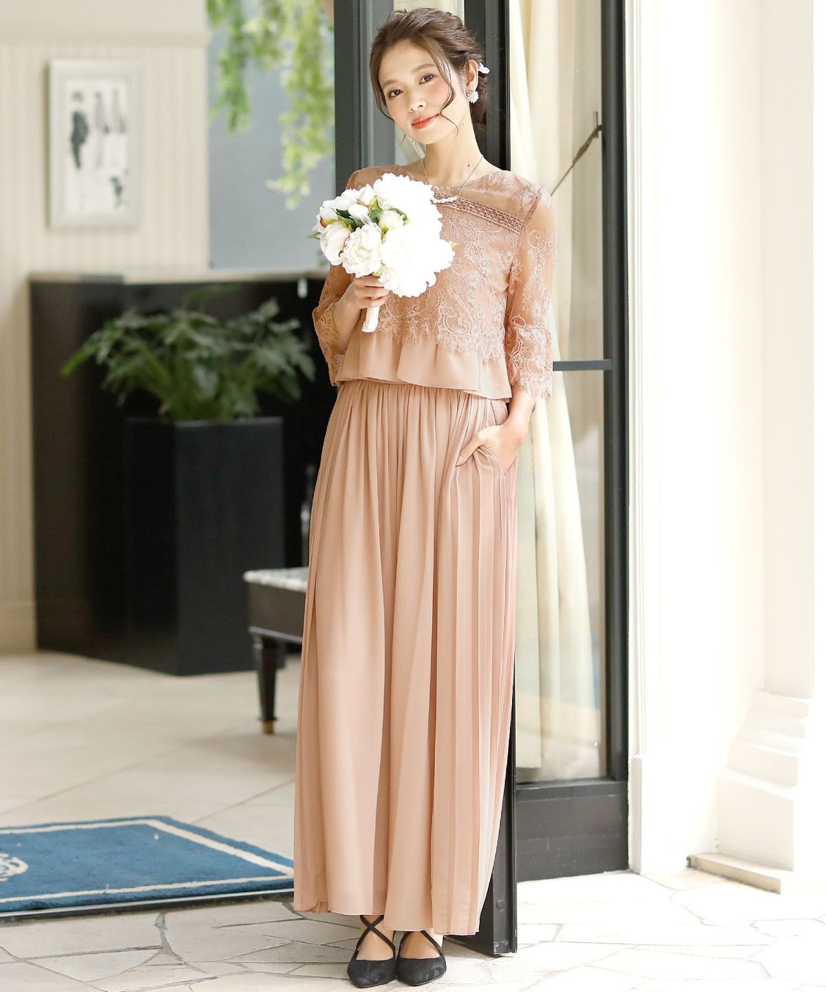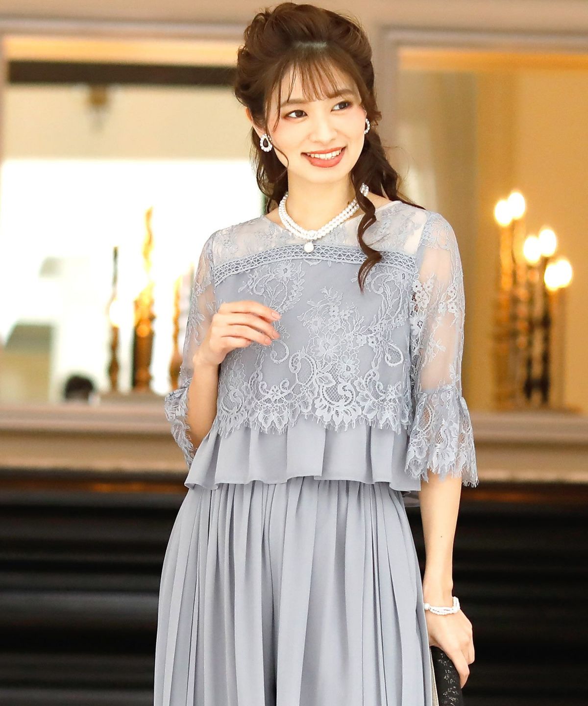 上品で楽ちんな優秀セットアップ♪ スカラップレースセットアップパンツドレス