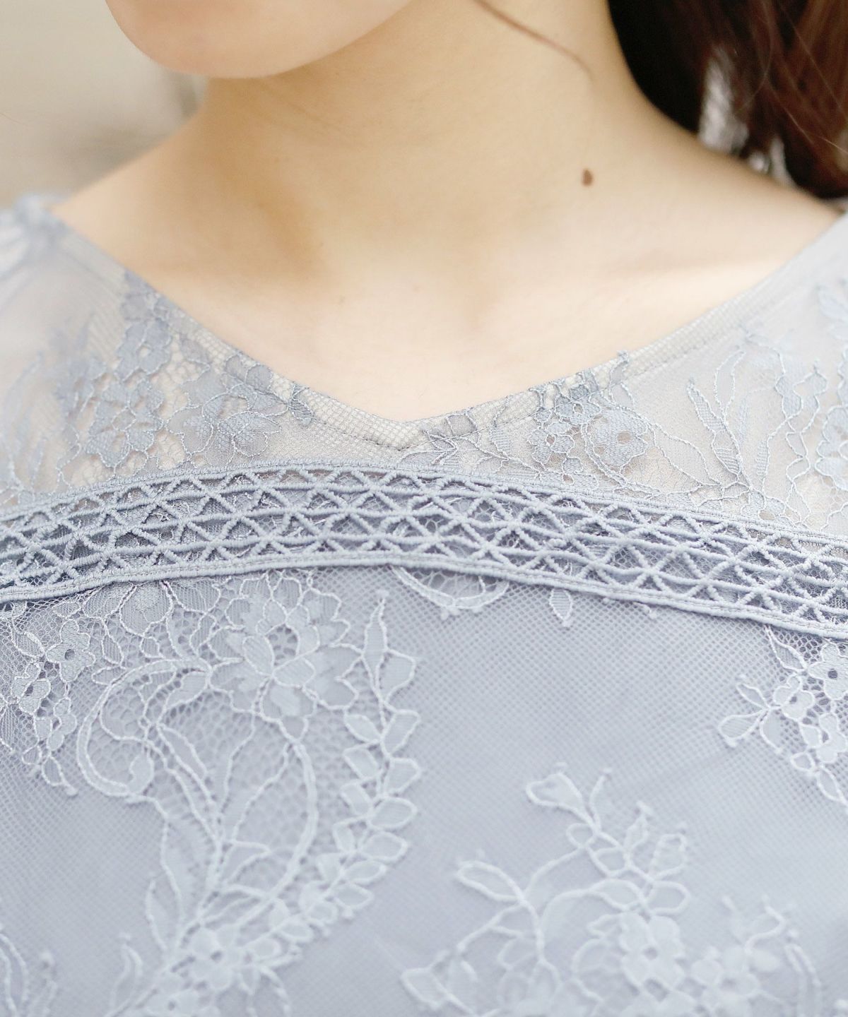 ◆素材:トップス レース部分…ナイロン100% シフォン部分…ポリエステル100% 裏地…ポリエステル100%