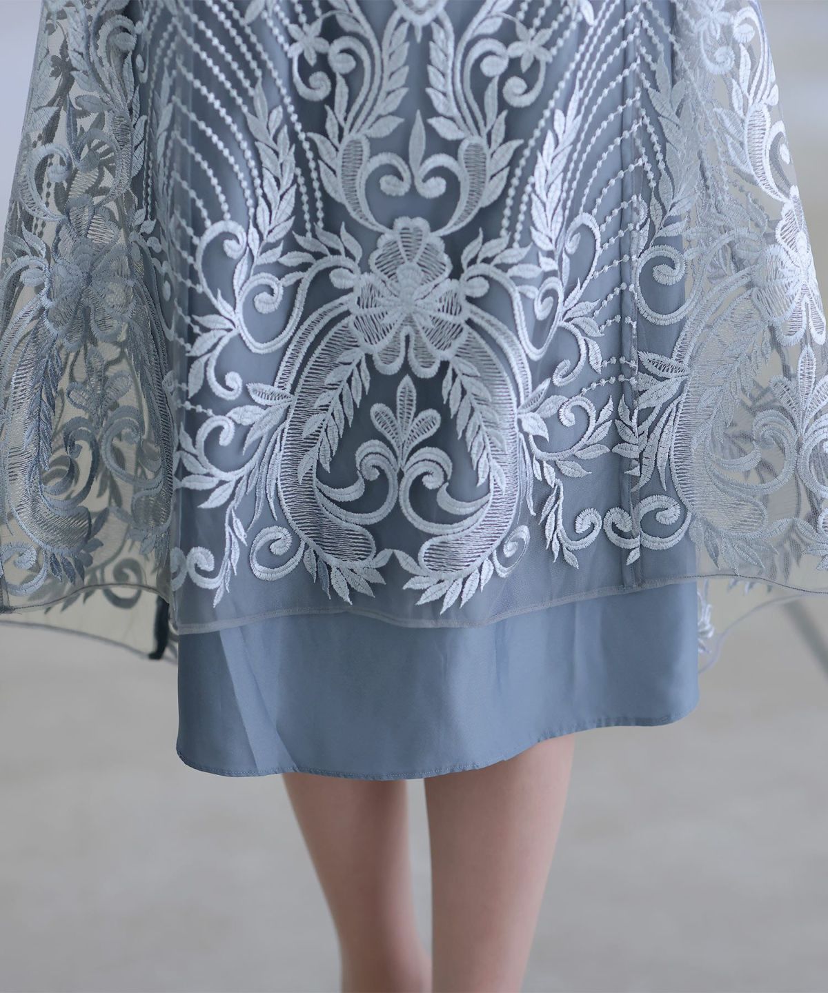 ■透け感×刺繍レース光沢感のある刺繍レースが煌びやかで上品なデザインワンピースです。程よい透け感で甘くなりすぎず、抜け感をプラス。立体感のある刺繍がエレガントな印象に。オケージョンシーンやパーティーなどにぴったりの華やかなアイテム。