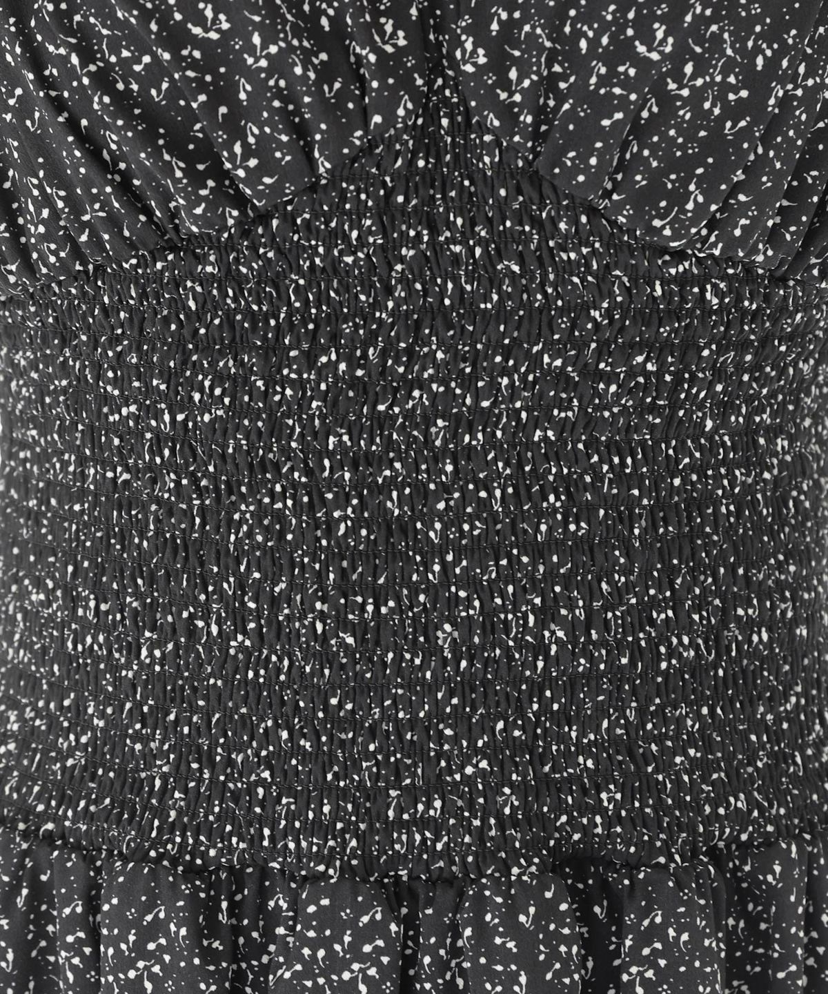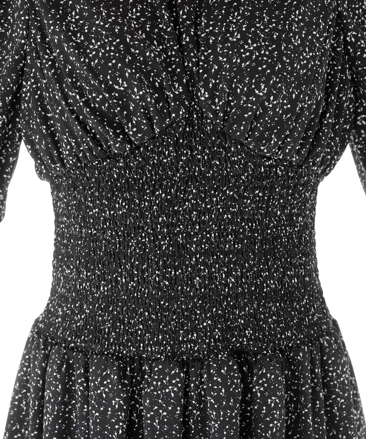 【二の腕】【脚】【ウエスト】【ヒップ】ブラウジングシルエットの可愛いウエストは、シャーリングを施しメリハリあるスタイルに。バルーン袖が二の腕を細見せしてくれます♪