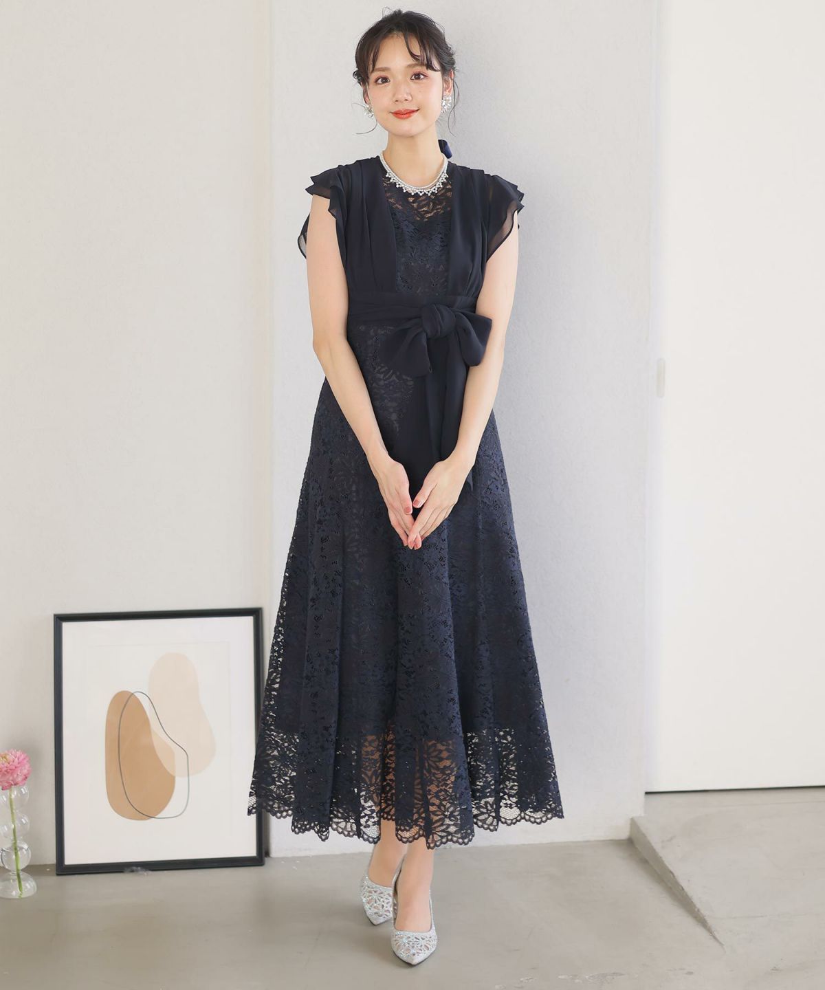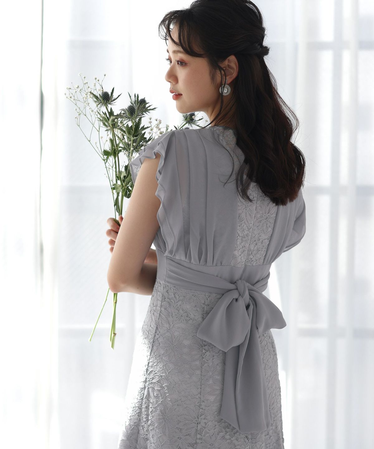 ■フレンチスリーブ×シフォン大振りのシフォンリボンのついたレースワンピースです。ひらひらとしたフレンチスリーブがポイント。リボンは前後どちらで結んでも可愛いデザイン。オケージョンシーンや特別なお食事会におすすめです。