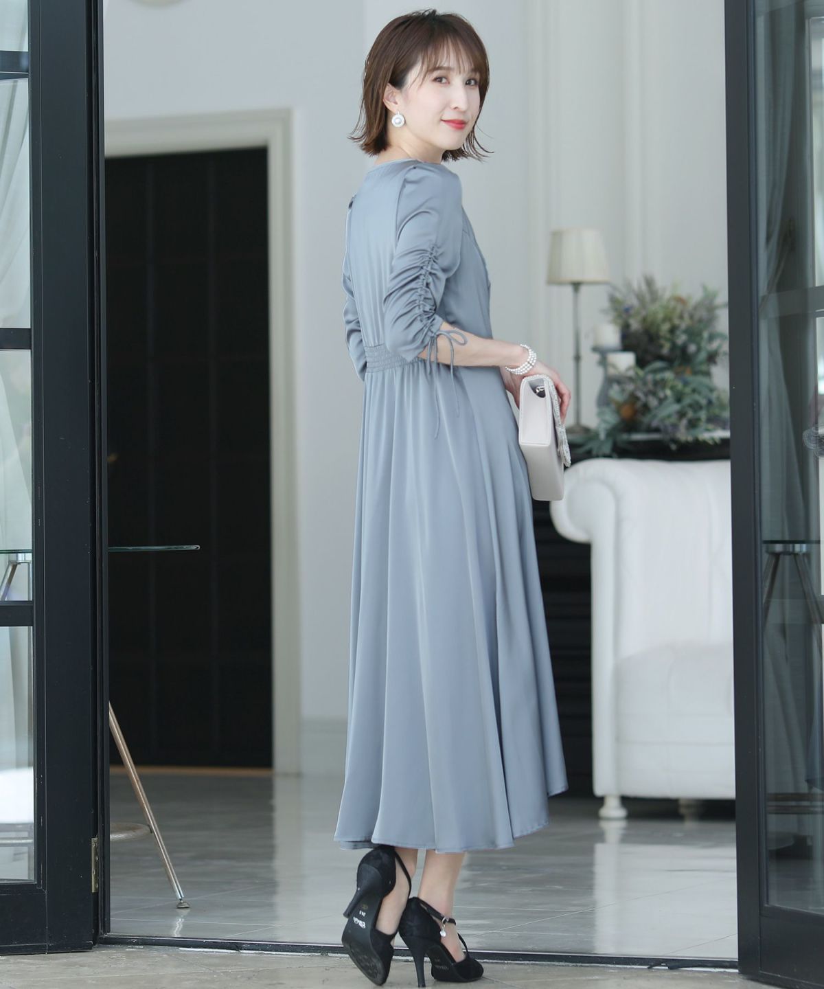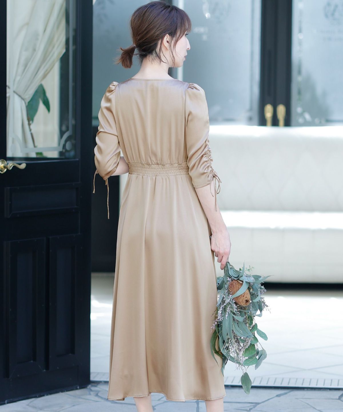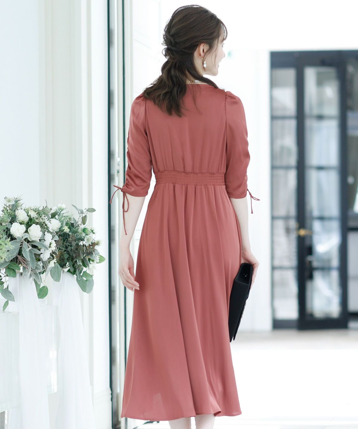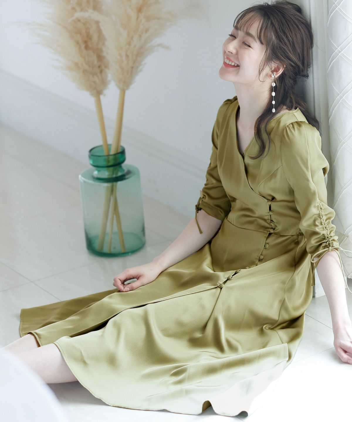 しなやかな落ち感と上品な光沢が魅力のサテンワンピース