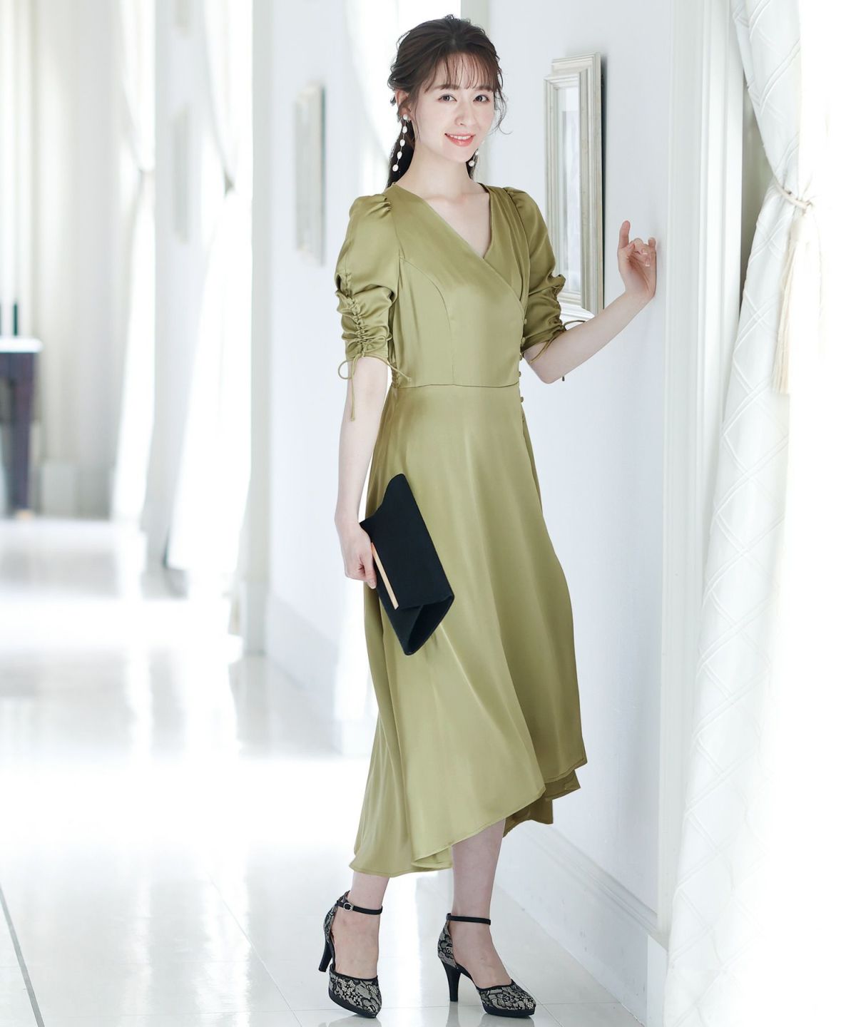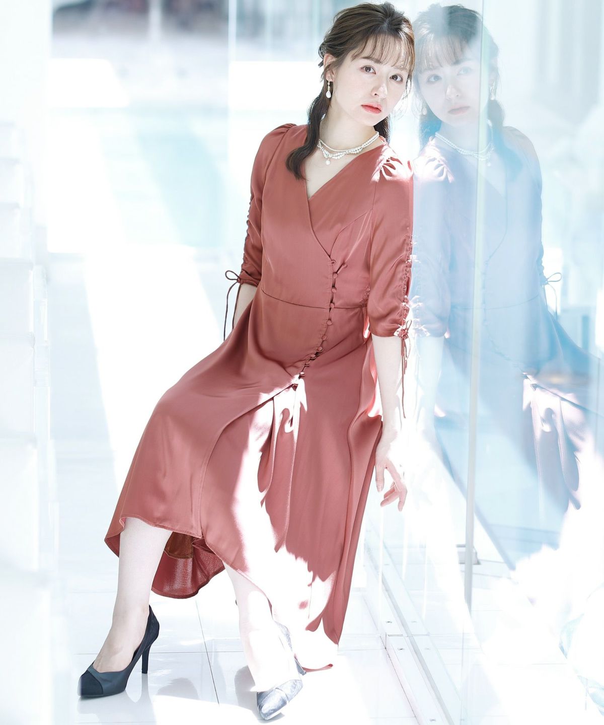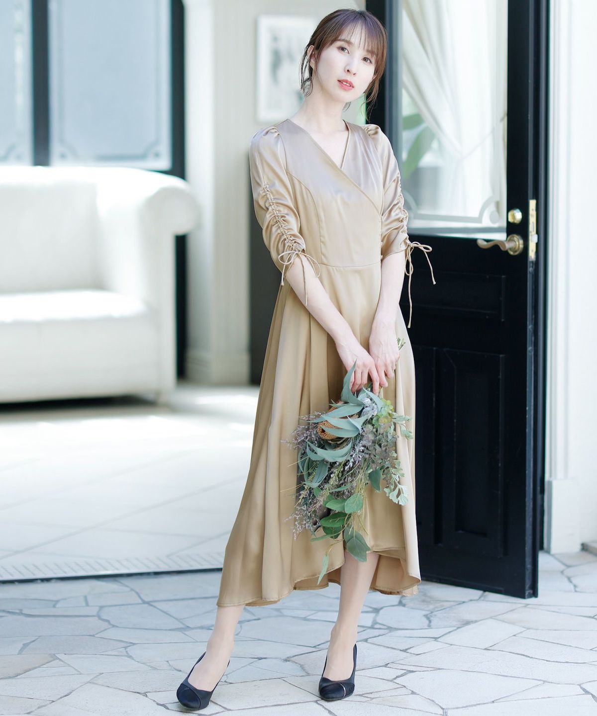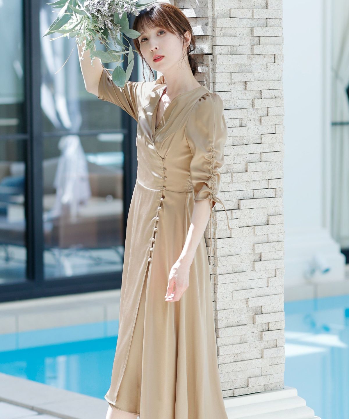 しなやかな落ち感と上品な光沢が魅力のサテンワンピース