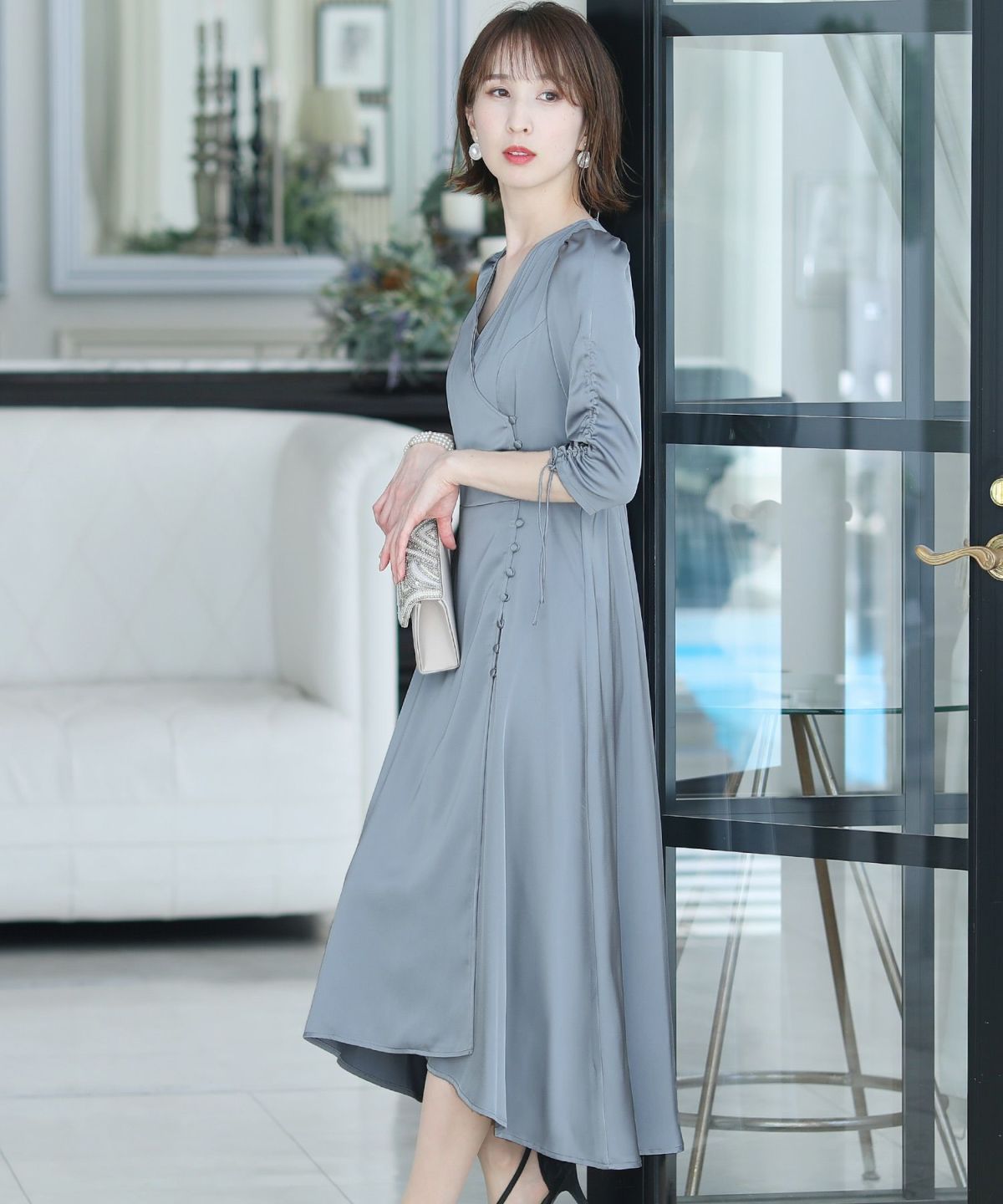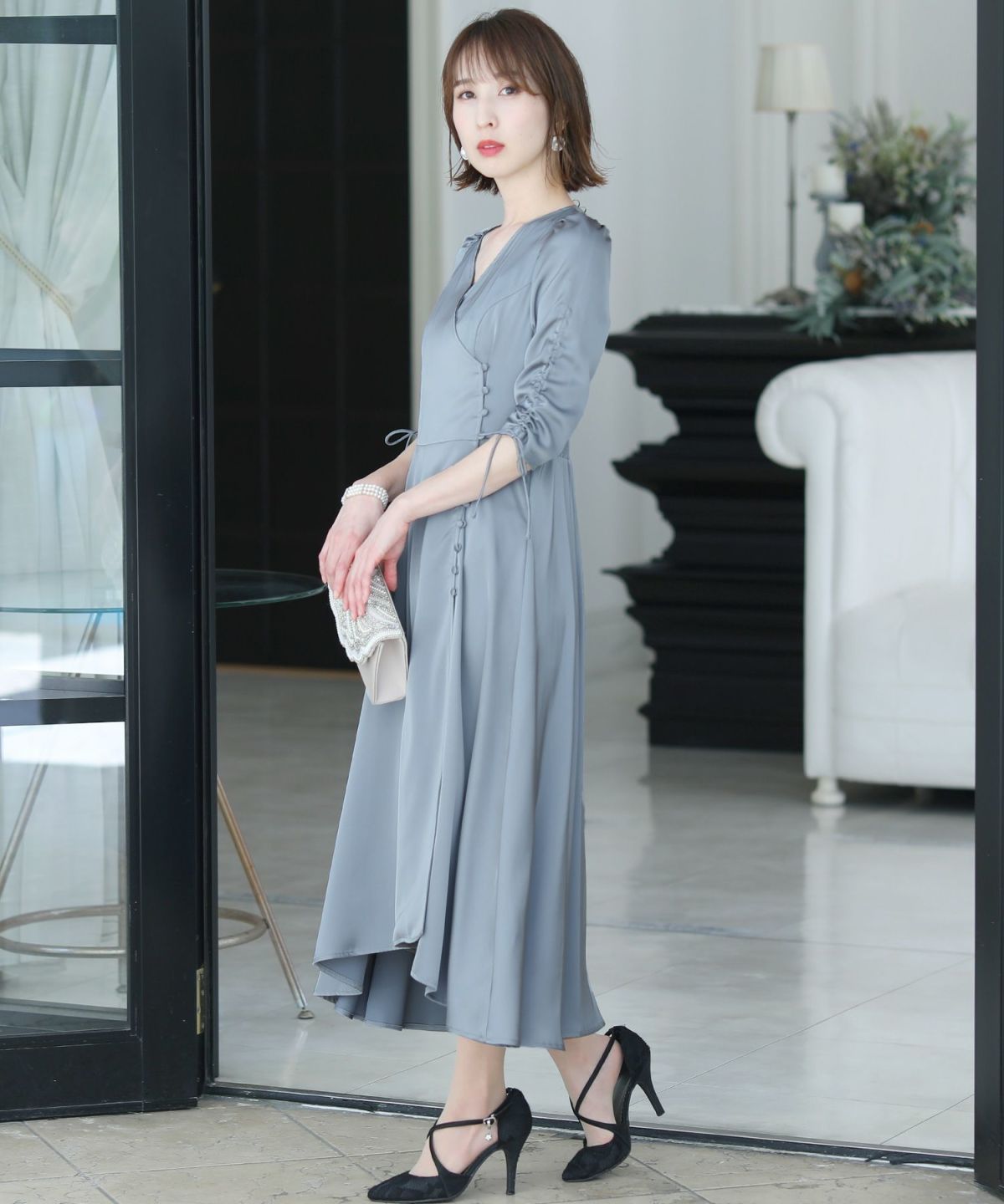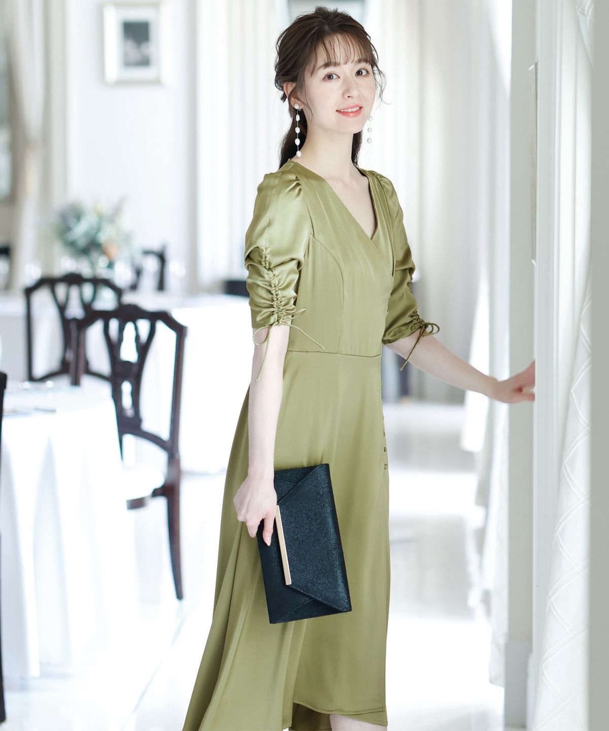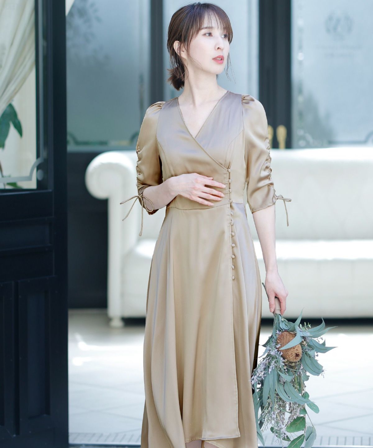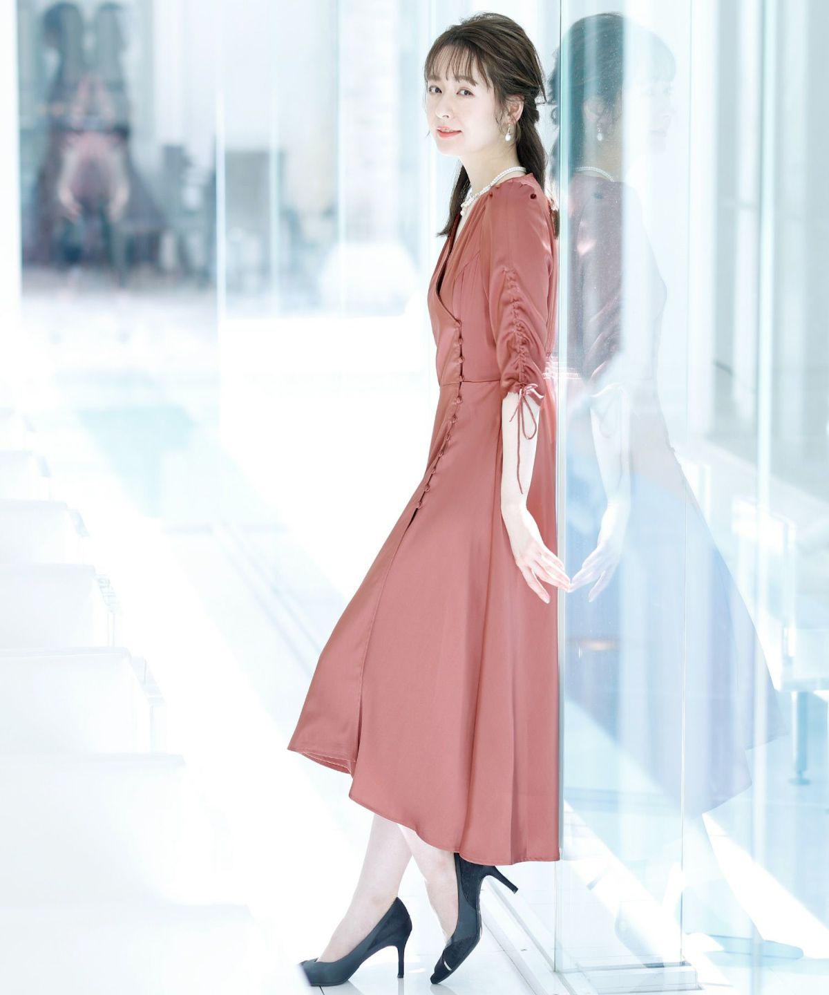 しなやかな落ち感と上品な光沢が魅力のサテンワンピース