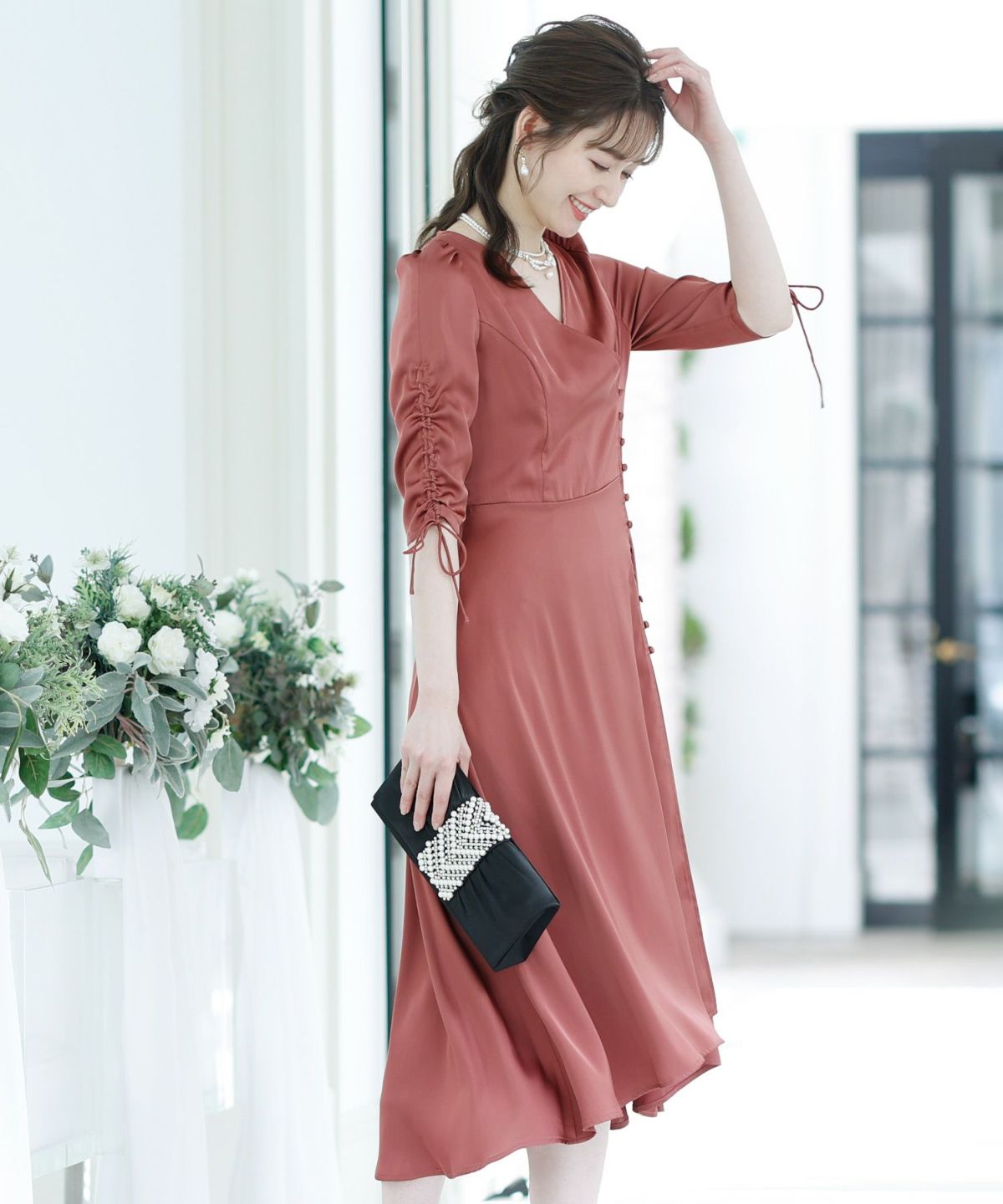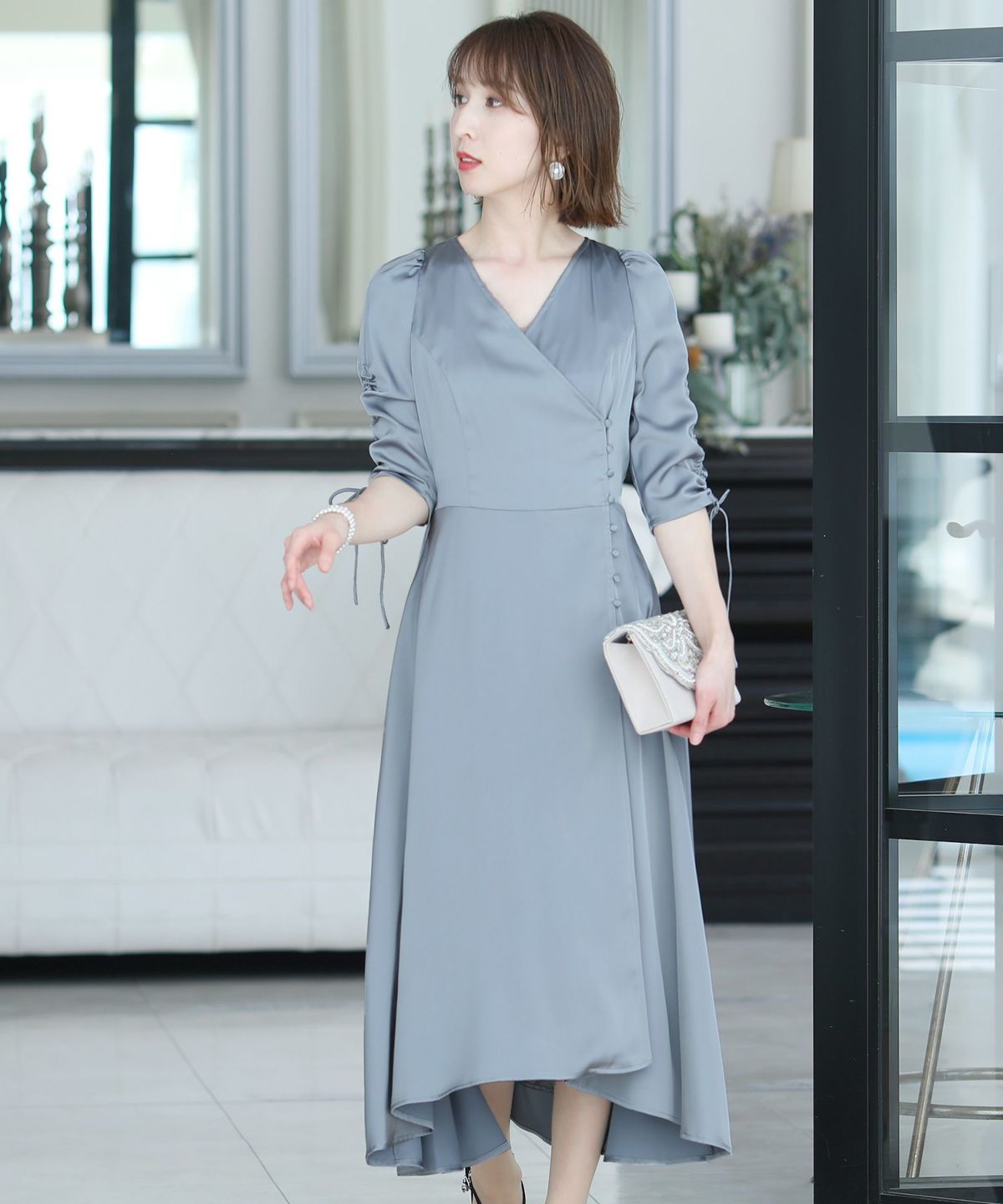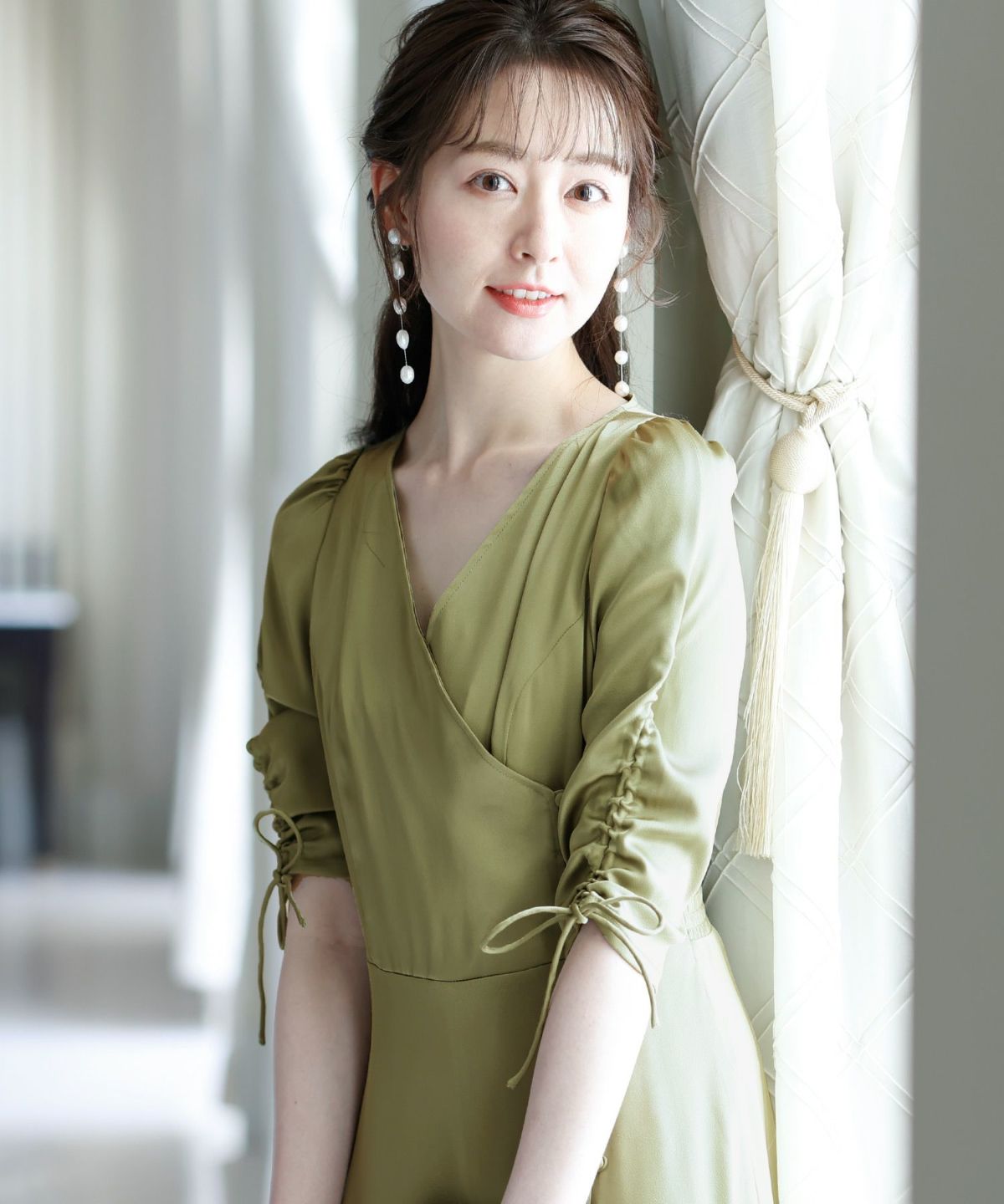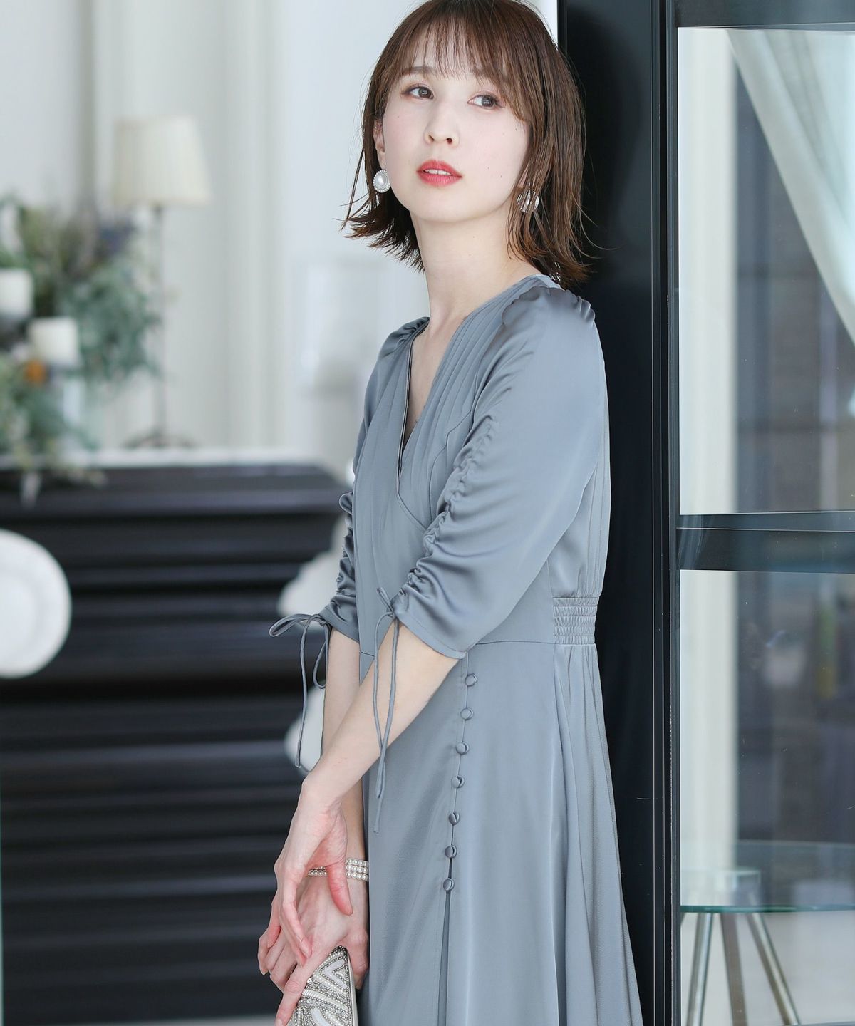 しなやかな落ち感と上品な光沢が魅力のサテンワンピース